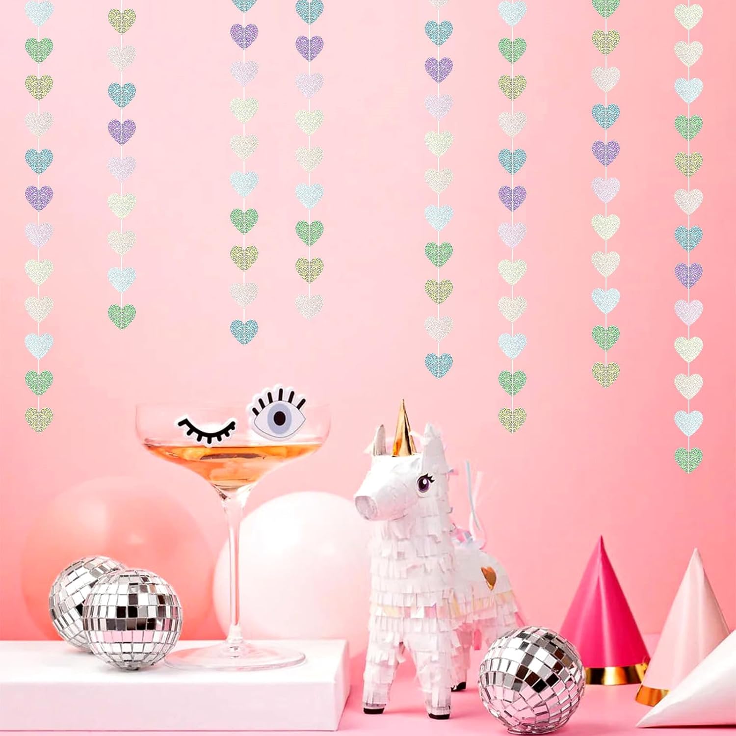 Iridescent Disco-Holographic Party-Decorations Heart Streamers-Garland - 52ft Glitter Dance Hanging Paper Banner, Wedding Bachelorette Birthday Euphoria Galentines Decor Hugfond