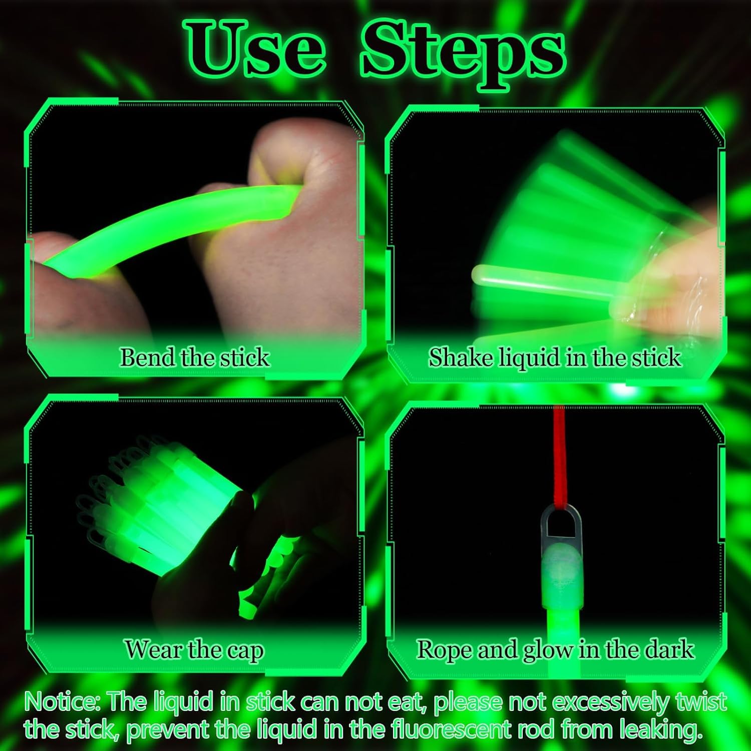 - Premium Material: The emergency light sticks are made of high-grade plastic, which is flexible and durable, not easy to break and non-leaking, the green glow sticks are incredibly easy to activate, requiring only a simple bend and shake motion to activate the glowing effect, once activated, the glow will last for hours, can provide long illumination.