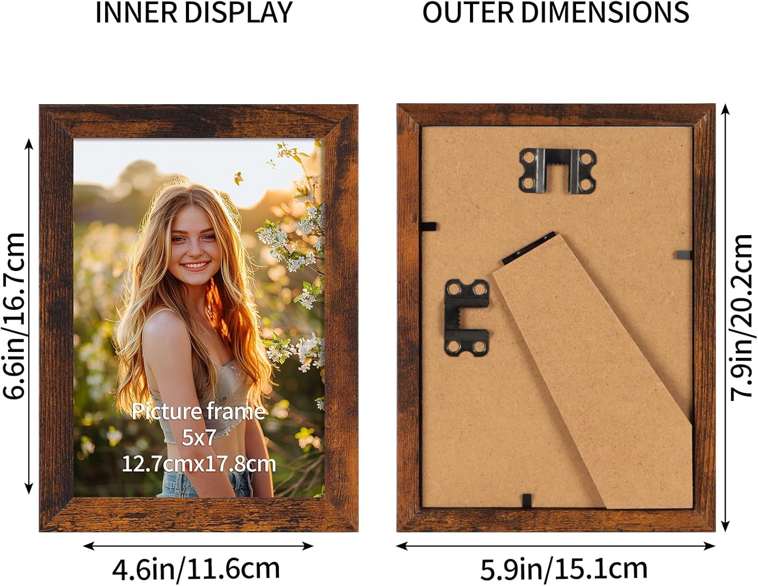 - Multiple Display: These 5x7 frames can be used for both wall and tabletop display, giving you the flexibility to showcase your photos in a variety of ways.