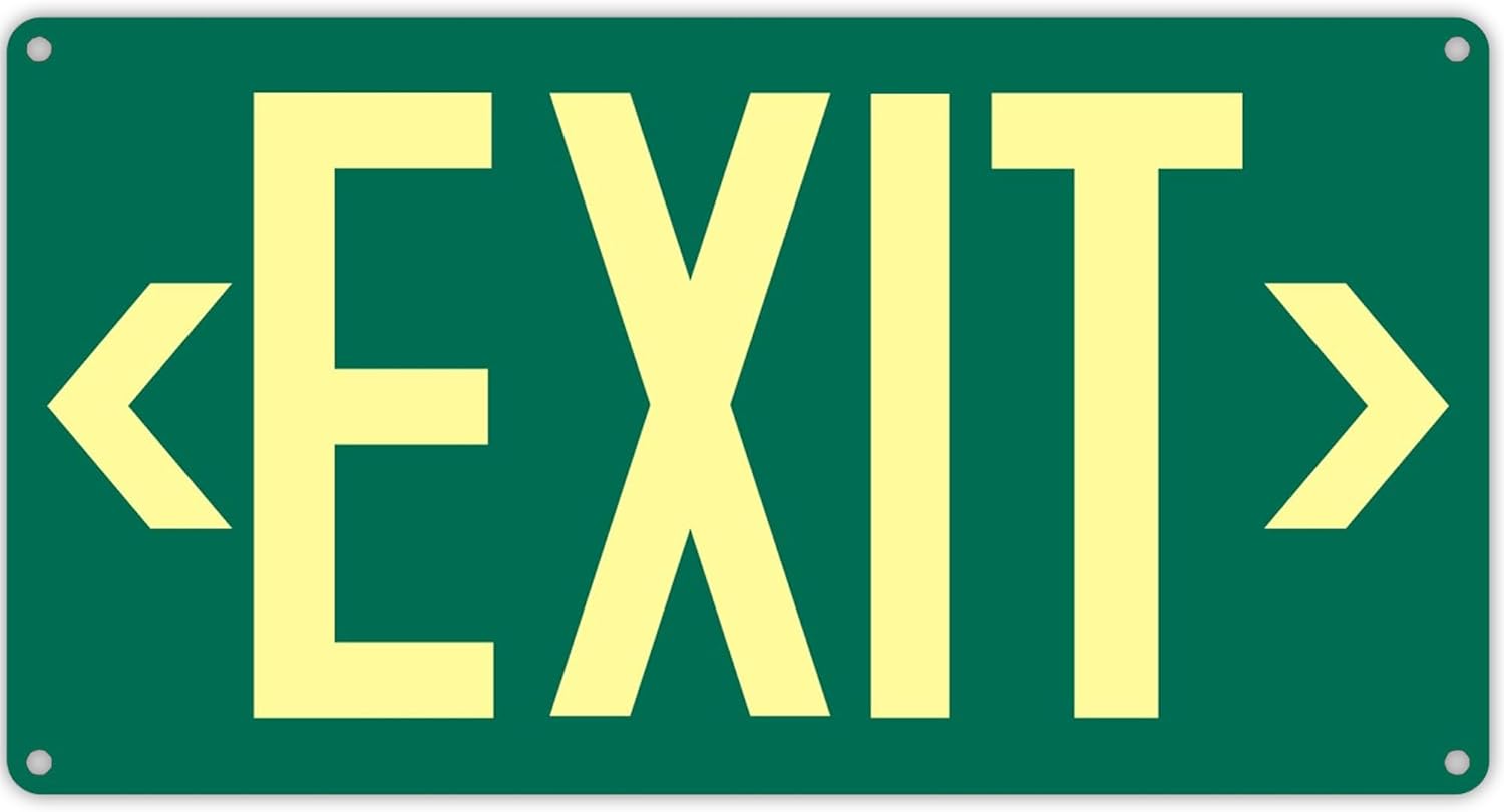- Package Content :- - Includes: 1pc of photoluminescent Exit Sign aluminum+ 2pcs Removable photoluminescent Arrows sticker