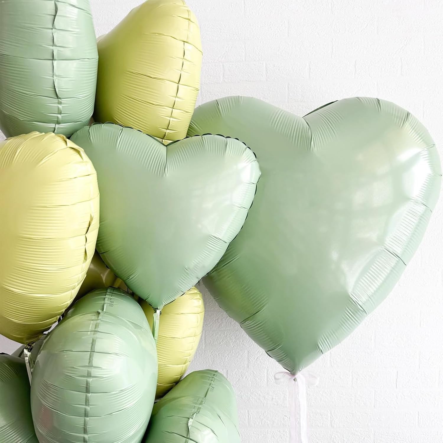 Sage Green Heart Balloons,12Pcs Olive Green Heart Shaped Foil Balloons,18Inch Pastel Green Helium Polyester Film Balloon for Baby Shower Birthday Anniversary Wedding Party Decorations