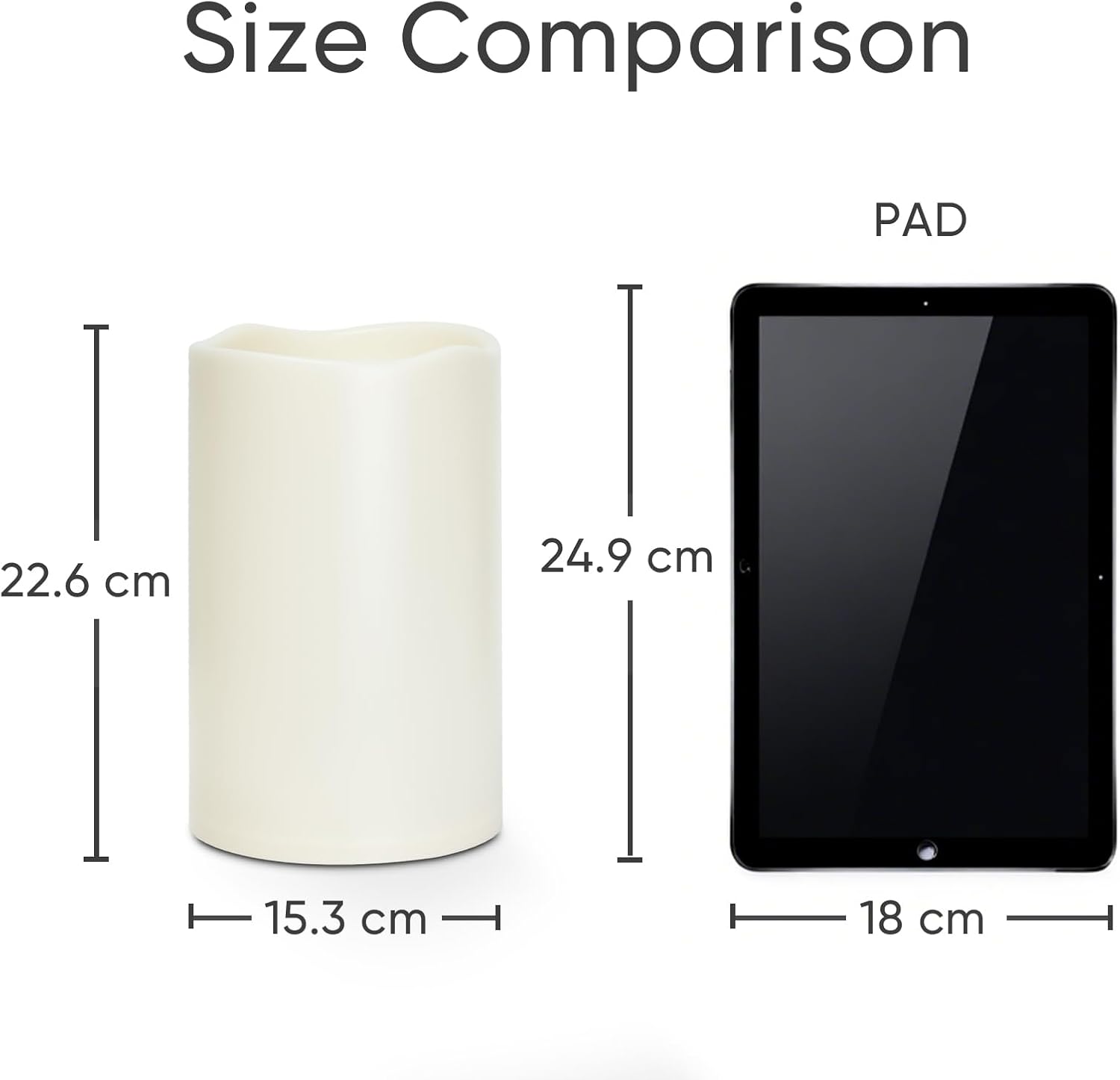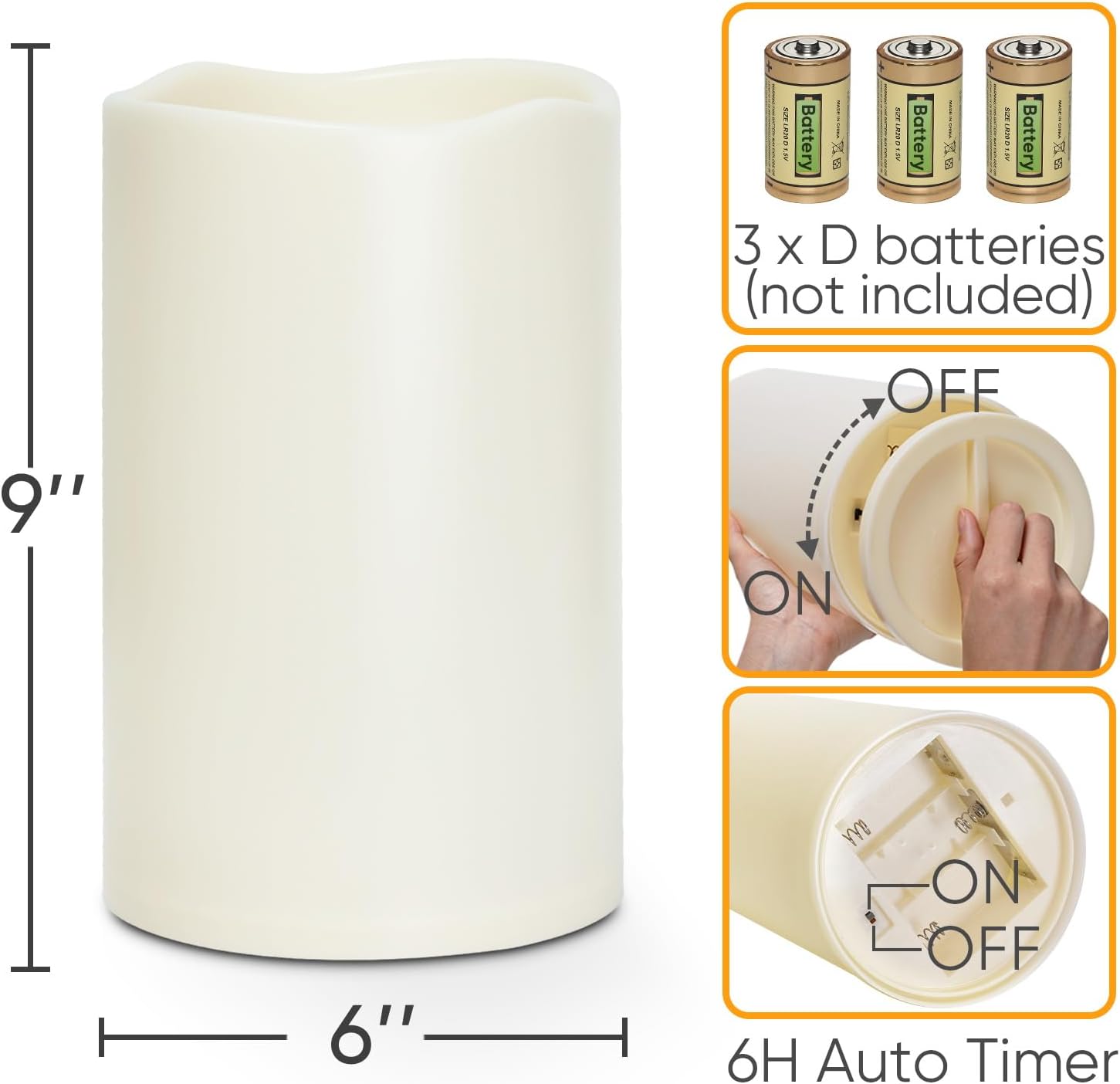 Homemory 6" x 9" Extra Large Outdoor Waterproof Candle with Auto 6-Hour Timer, No Remote, Ivory Plastic Made, Long Last for Half A Year
