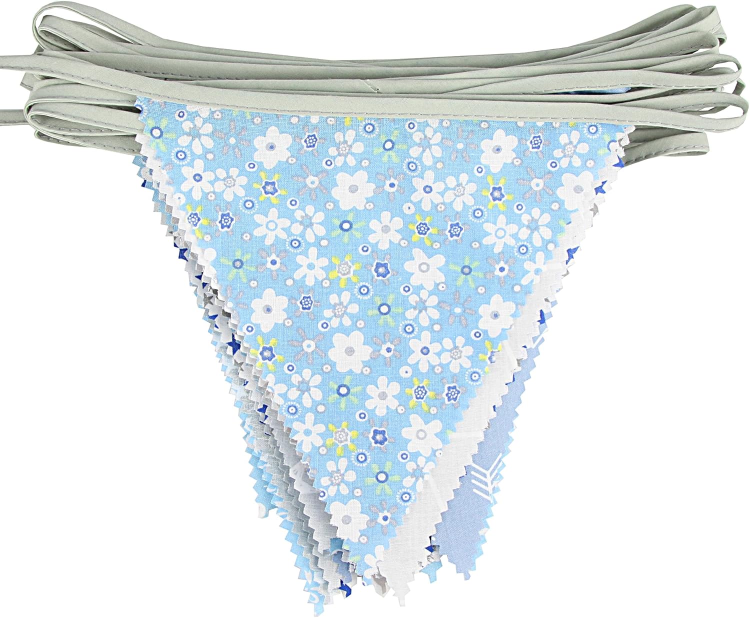 jijAcraft 39Ft Triangle Bunting Banner, 42Pcs Tea Floral Party Bunting Cotton Fabric Flags Pennant Garlands for Birthday Party, Wedding, Baby Shower, Outdoor and Home Decorations (Gray and Blue)
