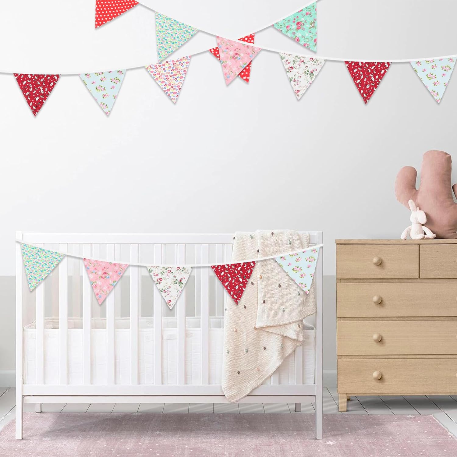 - 【Perfect for Any Celebration】Add a touch of elegance and charm to your events with the jijAcraft 39Ft Triangle Bunting Banner. Featuring 42 pieces of beautifully crafted tea floral cotton fabric flags, this banner is ideal for birthdays, weddings, baby showers, and more.