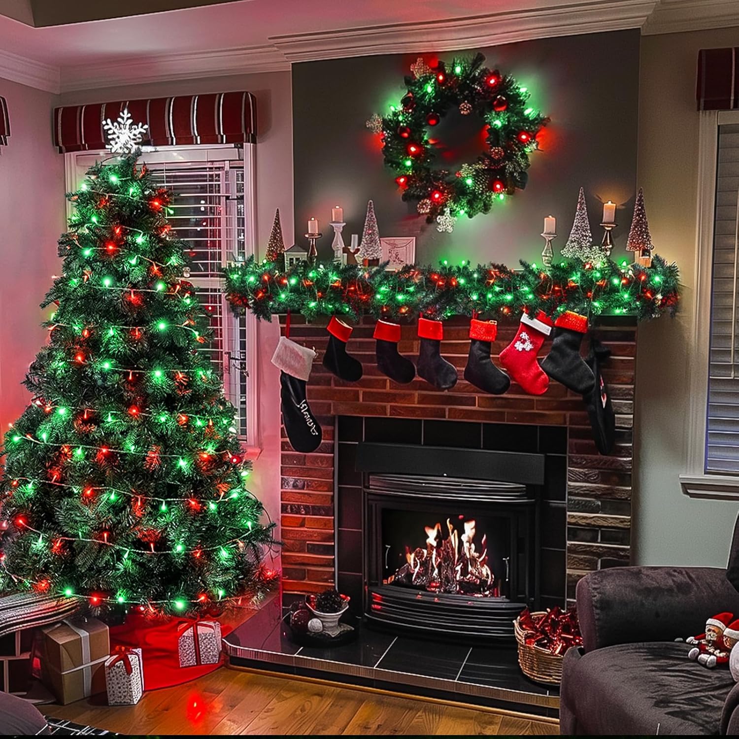 - 【Package Include】You'll receive 1x 500 LED red and green Christmas String Lights with a reel, 1x remote control, 1x UL Plug.