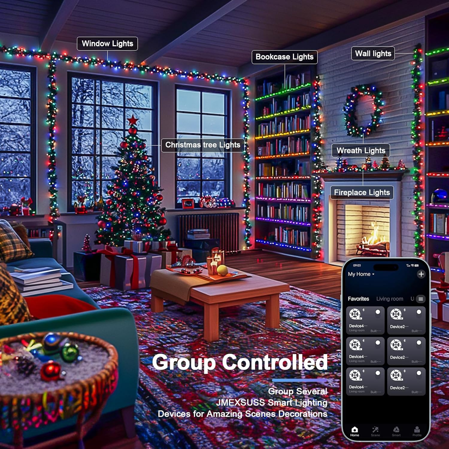 - 16 Million Colors Christmas Lights: JMEXSUSS smart Christmas lights offer a more extensive range of colors compared to other string lights. This includes standard single colors, unique bi-color combinations, and traditional tri-color and multi-color options, making them ideal for any festival lighting decor throughout the year. Multicolor, white, red & white, red & green, etc for Xmas; red white blue for July 4th; orange & purple for Halloween/ Thanksgiving, red/pink/green for Christmas.
