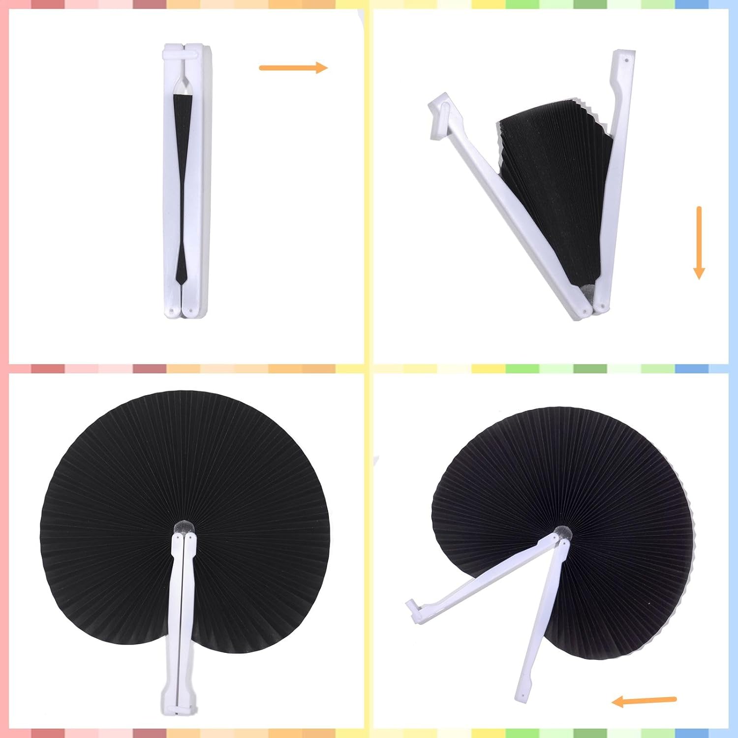 - PAPER FANS EASY TO USED:·Crafted from premium quality imported paper and features a soft and durable plastic handle for easy usage.Our paper fans are lightweight making them perfect to carry around for everyday use.