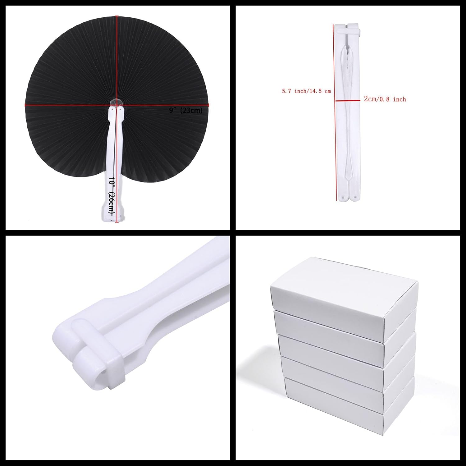 - THE PAPER FANS SIZE:·Each of these beautifully designed handheld fans measure- approx. 5.7” x 0.8”/ 14.5 cm x 2 cm(folded size); approx. 9” x 10.2”/ 23 cm x 26 cm (opened sized) .Perfect for wedding,dancing,party favors.