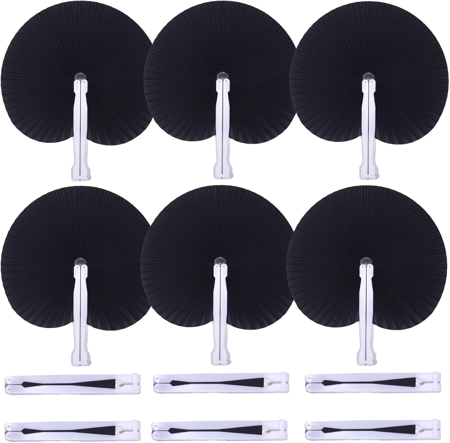 12 Packs Decorative Paper Folding Hand Fans Handheld,Black Round Foldable Wedding Fans Chinese and Japanese Fans Bulk for Bridal Guest Church Party Favors Dancing Birthday DIY