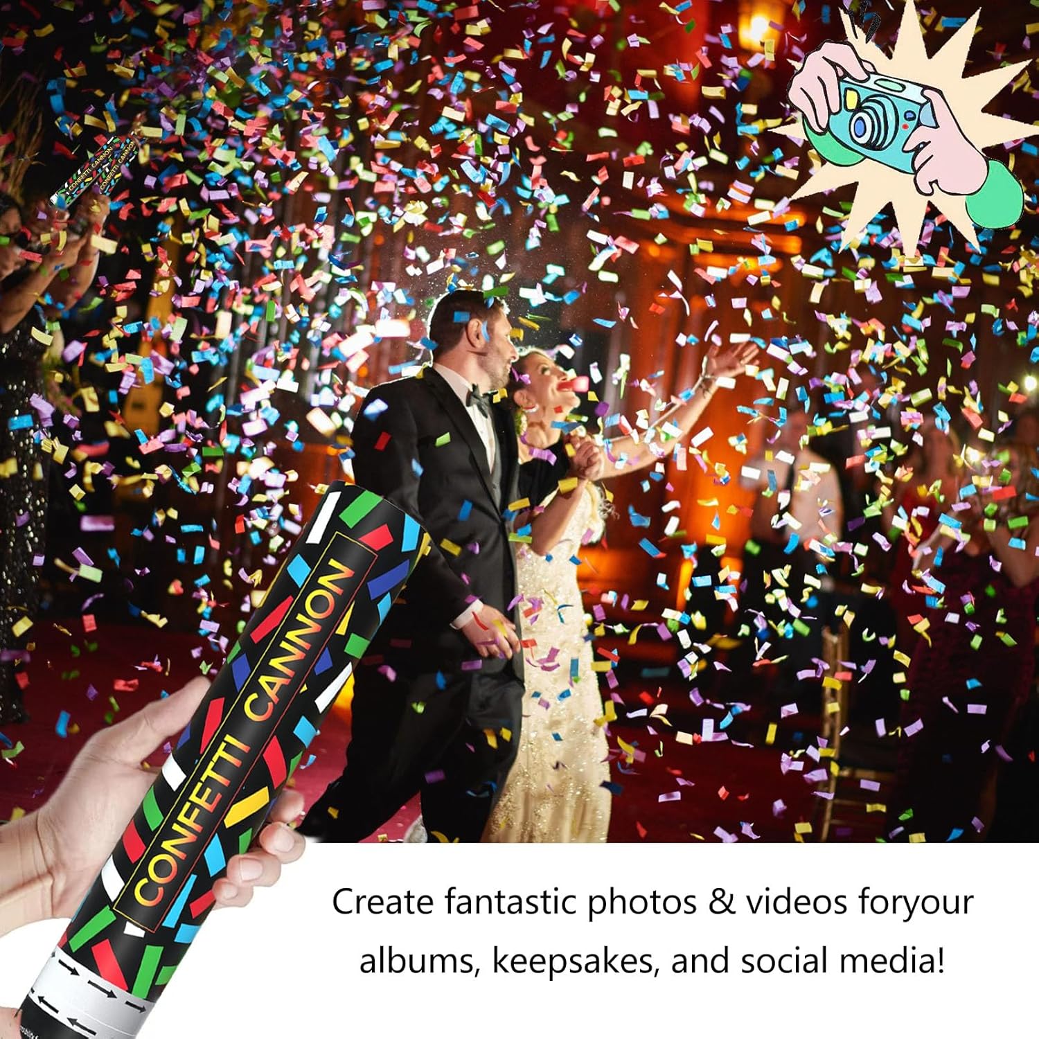 - 【Colorful Confetti Cannon】Our colorful single party confetti cannon releases colorful confetti, immediately creating a party atmosphere. Whether you are celebrating a special occasion or just for fun, this colorful paper cannon will definitely bring smiles and laughter.