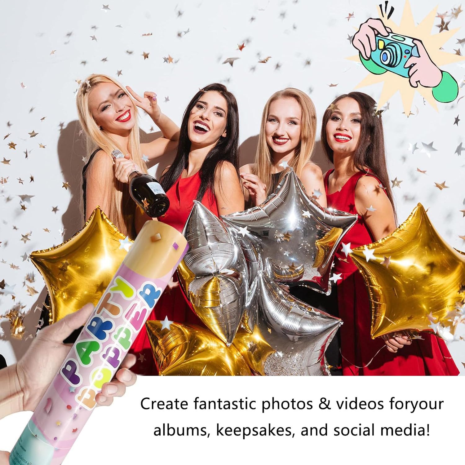 - 【Gold&Silver Star Confetti Cannon】Our gold&silver star confetti cannon releases gold&silver star confetti, immediately creating a party atmosphere. Whether you are celebrating a special occasion or just for fun, this star paper cannon will definitely bring smiles and laughter.