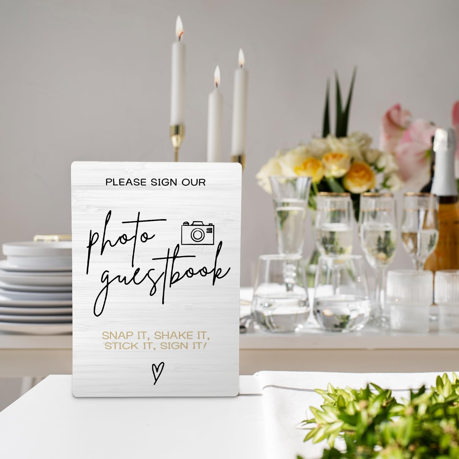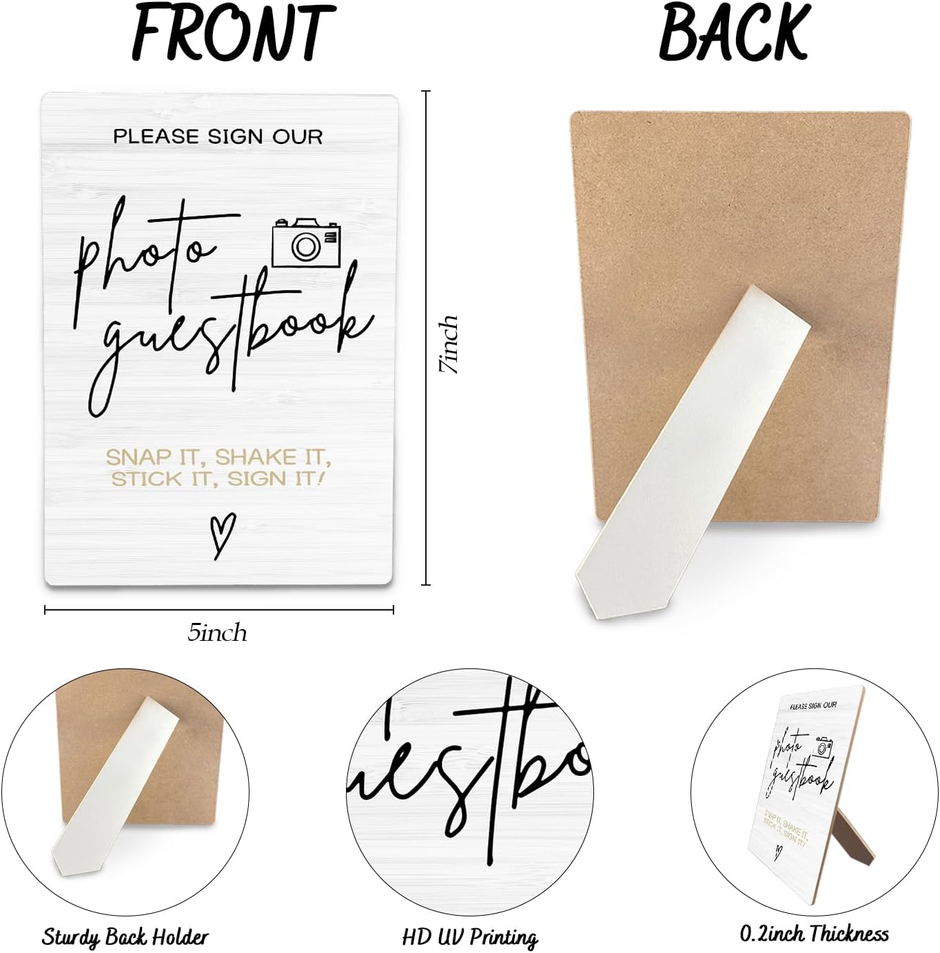 Photo Guest Book Wooden Stand 5x7inch, Wedding Reception Desk Decor for Guests to Sign