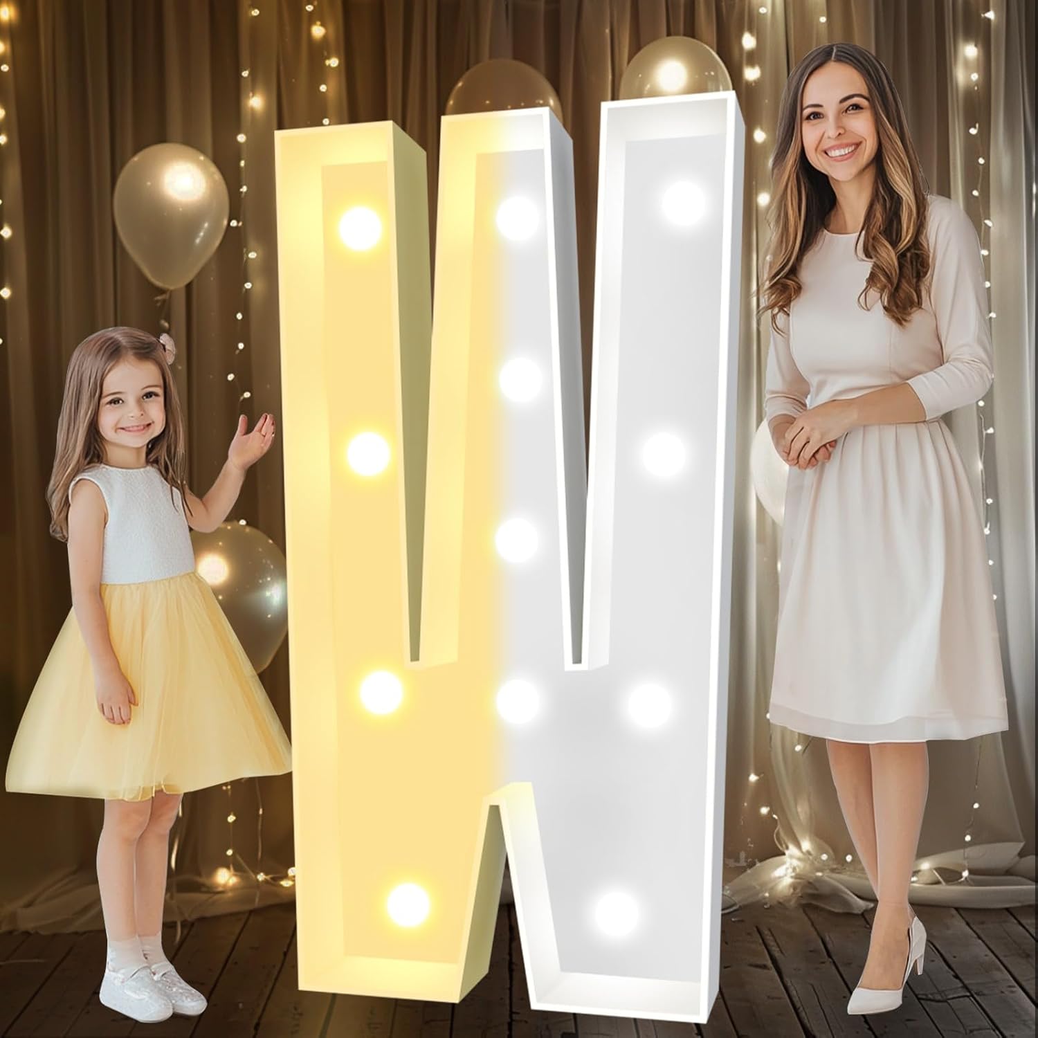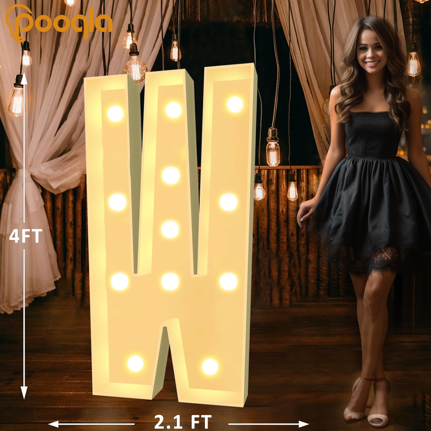 Pooqla 4 FT Marquee Light Up Letters, Cool White and Warm White Marquee Letter 4 Feet Tall, Giant LED Sign Big Mosaic Letter W for Balloons Birthday Party Anniversary Wedding Decorations