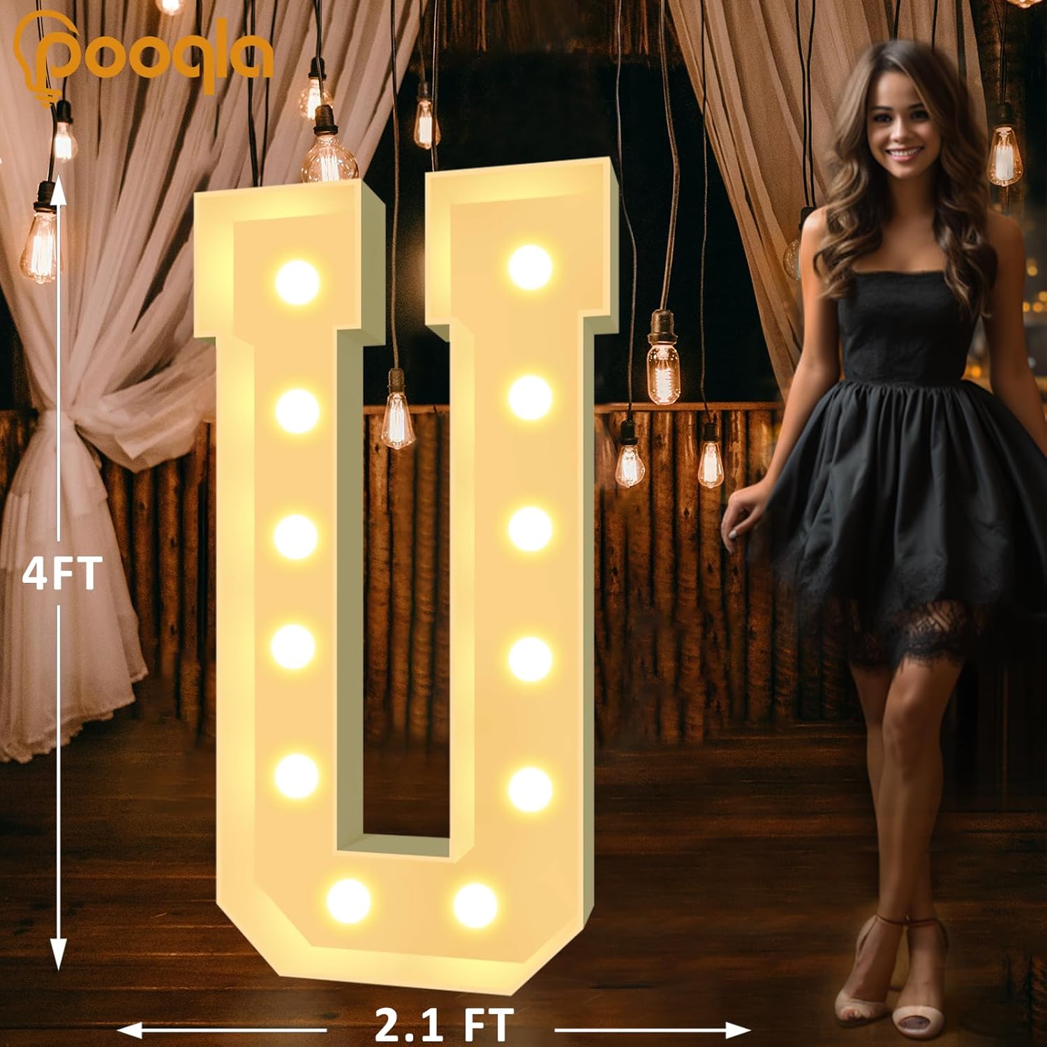 Pooqla 4 FT Marquee Light Up Letters, Cool White and Warm White Marquee Letter 4 Feet Tall, Giant LED Sign Big Mosaic Letter U for Balloons Birthday Party Anniversary Wedding Decorations