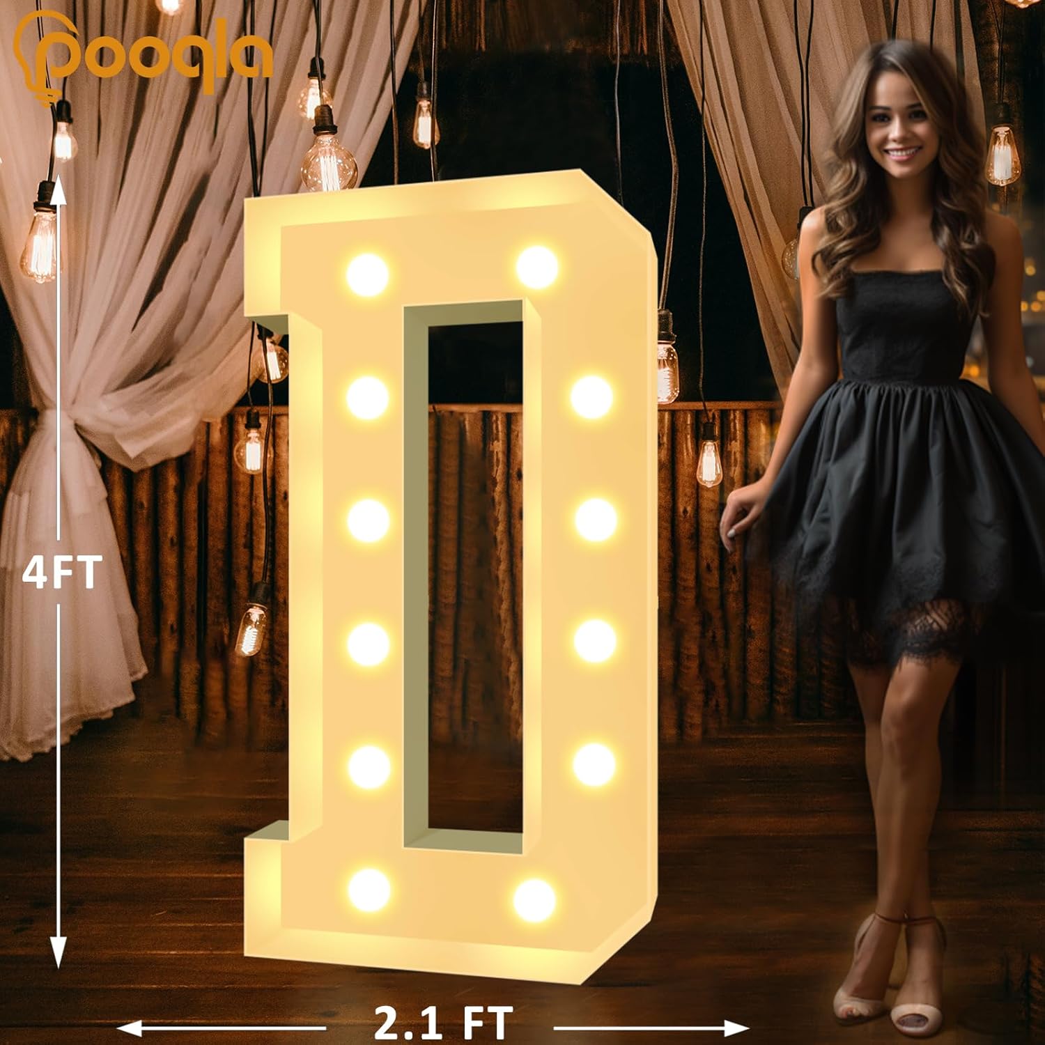 Pooqla 4 FT Marquee Light Up Letters, Cool White and Warm White Marquee Letter 4 Feet Tall, Giant LED Sign Big Mosaic Letter D for Balloons Birthday Party Anniversary Wedding Decorations
