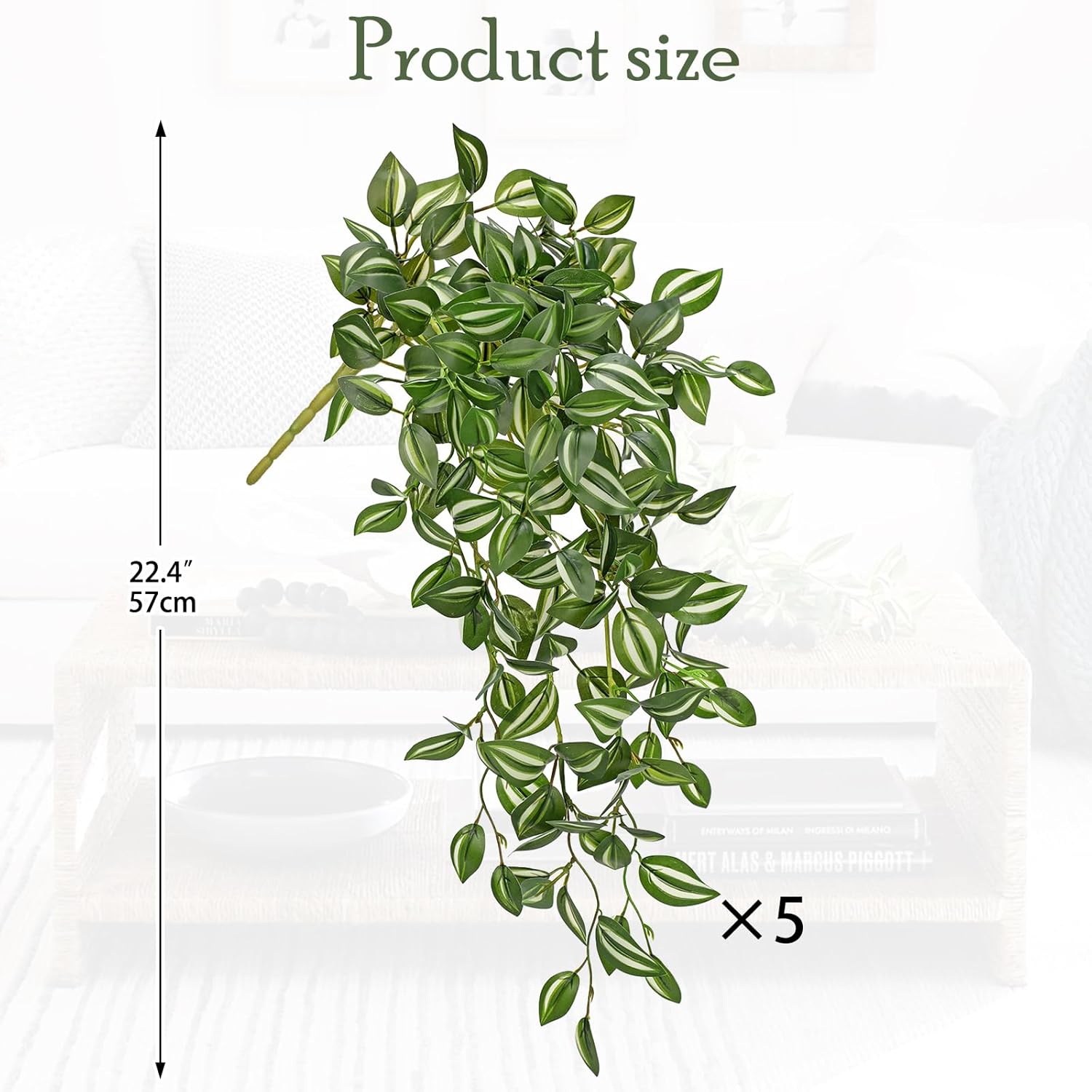 - 🌱Lifelike & Vibrant - Each order includes 5 pcs Wandering Jew fake hanging plants. The plants lengths are 22". They boast a lifelike appearance with vibrant colors and realistic details, adding a touch of greenery to your small space year-round.