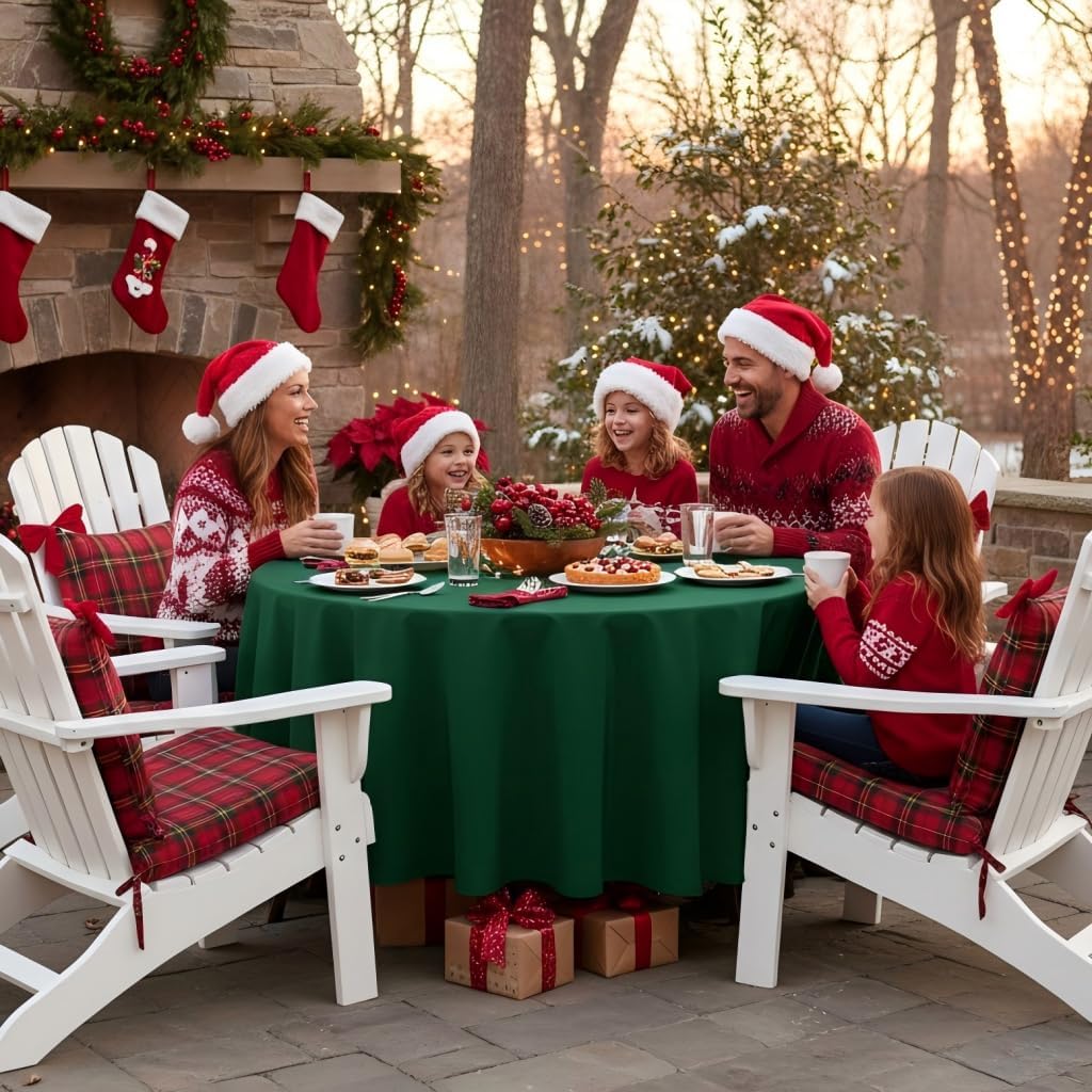 sancua Round Tablecloth - 108 Inch - Water Resistant Spill Proof Washable Polyester Table Cloth Decorative Fabric for Dining, Buffet Parties and Camping, Hunter Green
