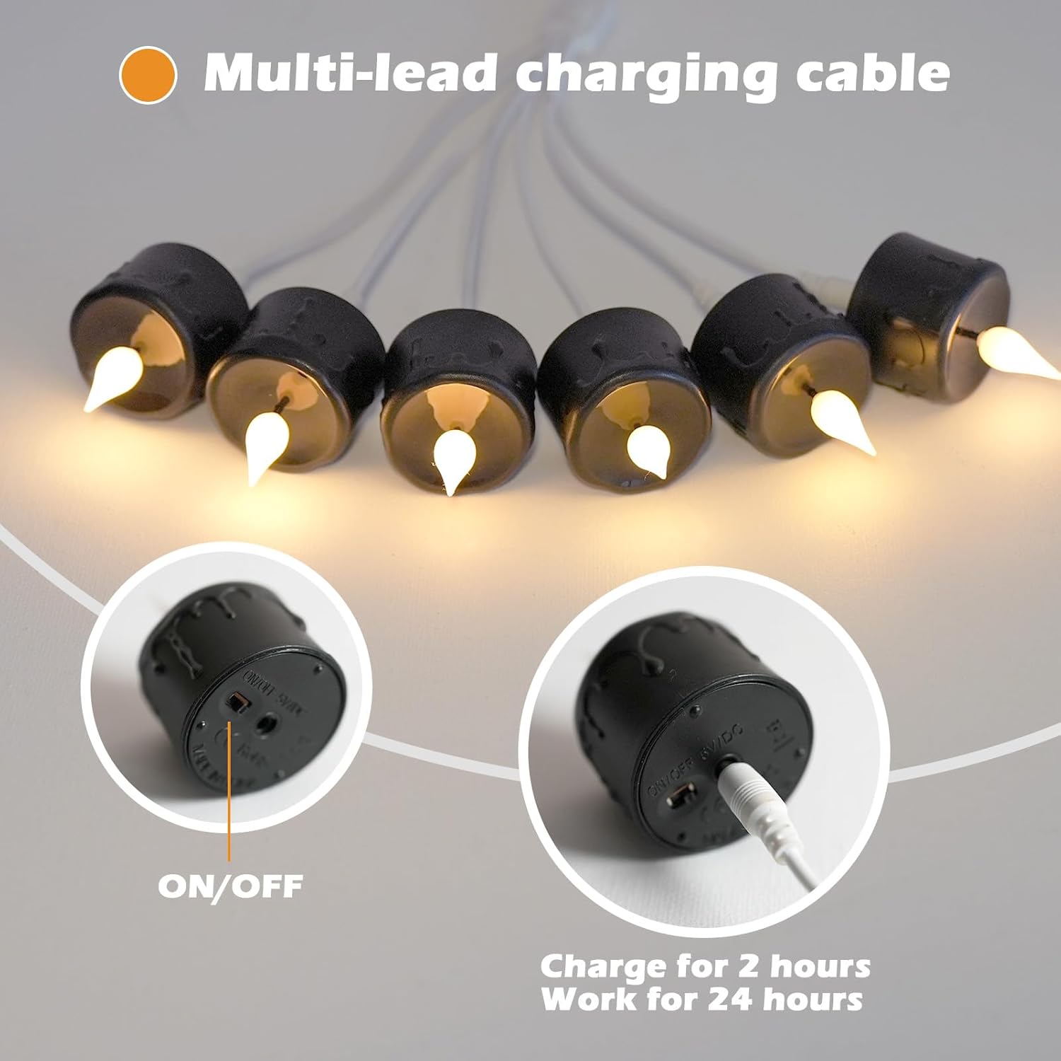 - Rechargeable & Long Lasting:Do you have the trouble of changing batteries frequently? The rechargeable candle has a split charger, which only requires one port to charge, saying goodbye to disposable batteries, and charging it easily for unlimited use. The battery power candles can continuously work for about 40 hours after fully charging. Environmental-friendly and money-saving.