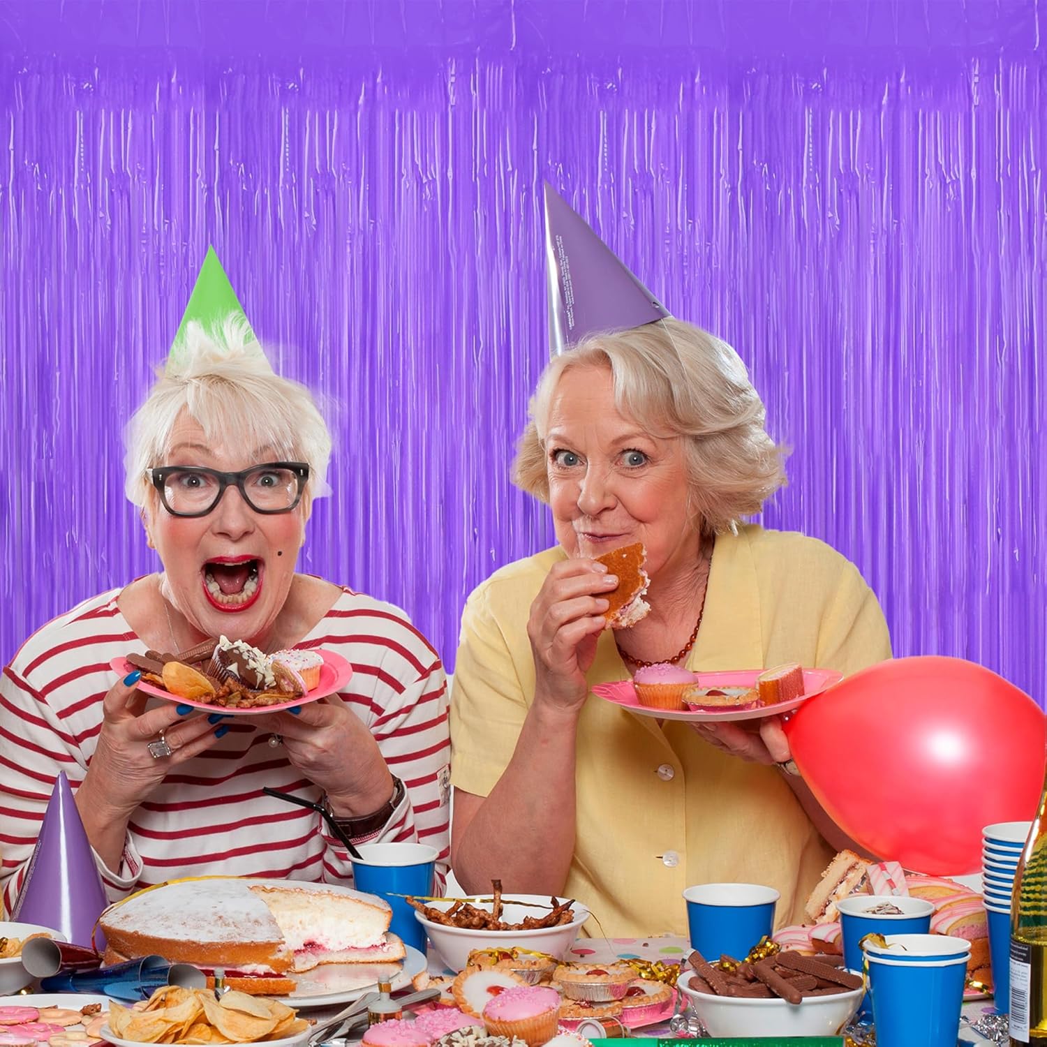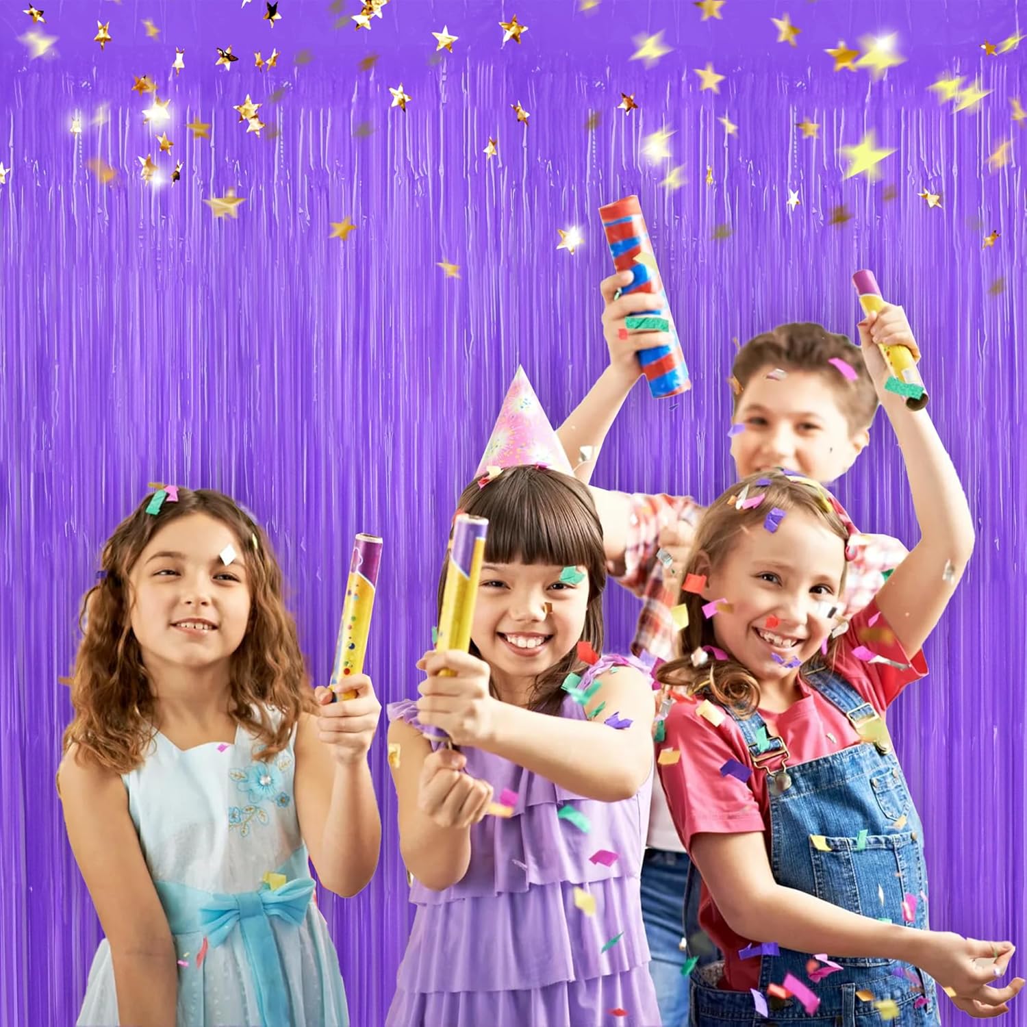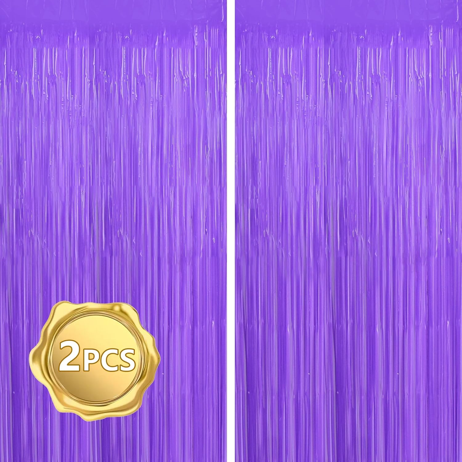 BEISHIDA 2Pcs Purple Door Streamer Fluorescent Purple Backdrop Blue Foil Fringe Curtains Tinsel for Birthday Baby Shower Halloween Backdrop Wedding Party Decoration (3.28 ft x 6.56 ft)
