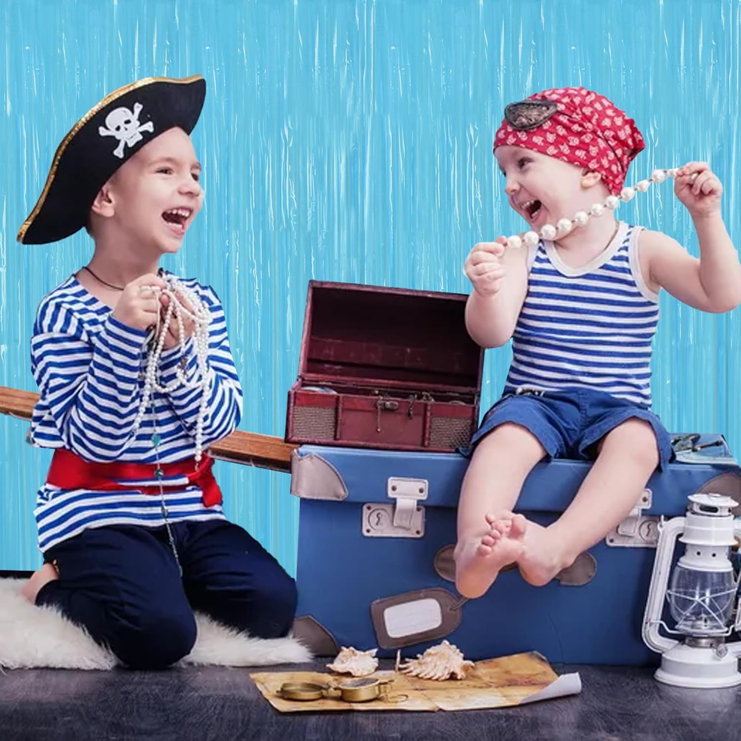 BEISHIDA 2Pcs Light Blue Door Streamer Fluorescent Blue Backdrop Blue Foil Fringe Curtains Tinsel for Birthday Baby Shower Backdrop Wedding Party Decoration (3.28 ft x 6.56 ft)