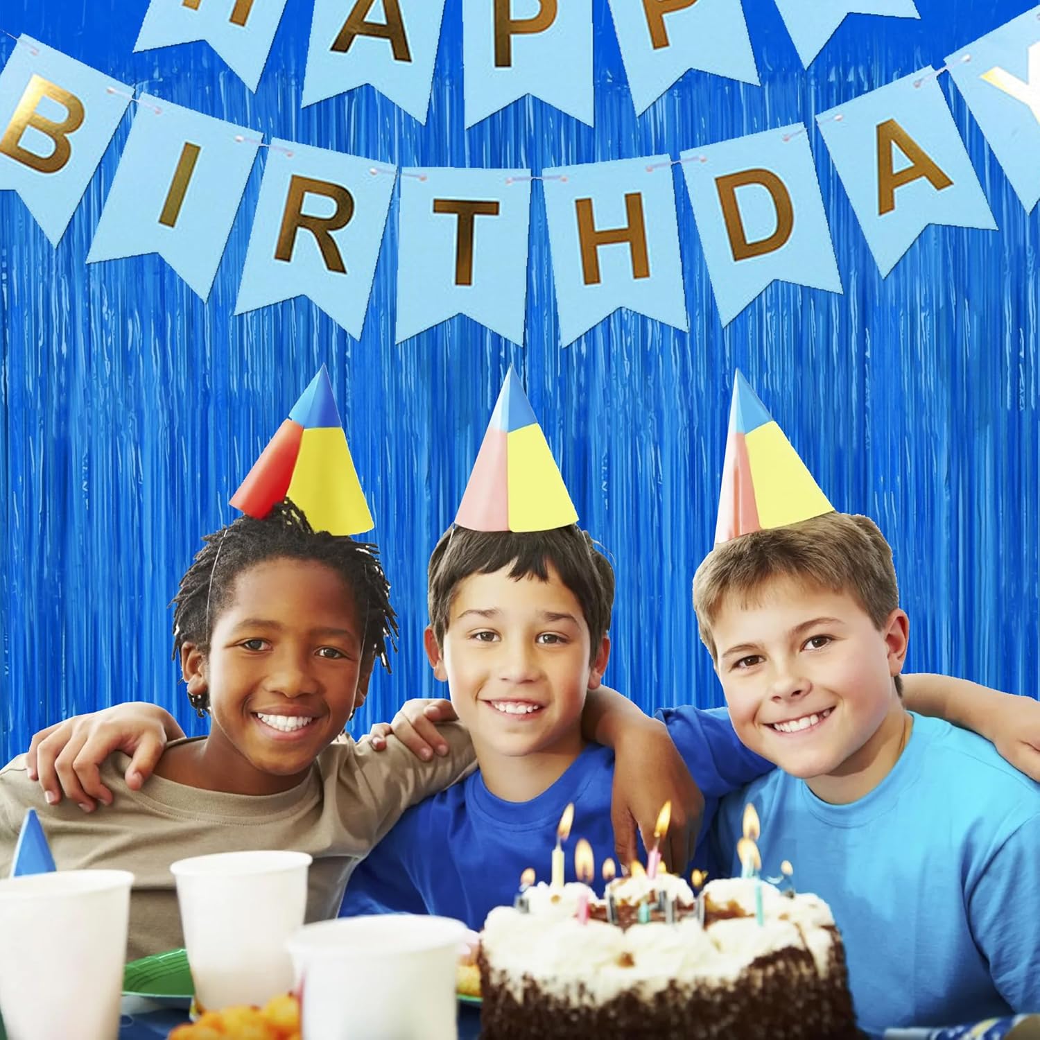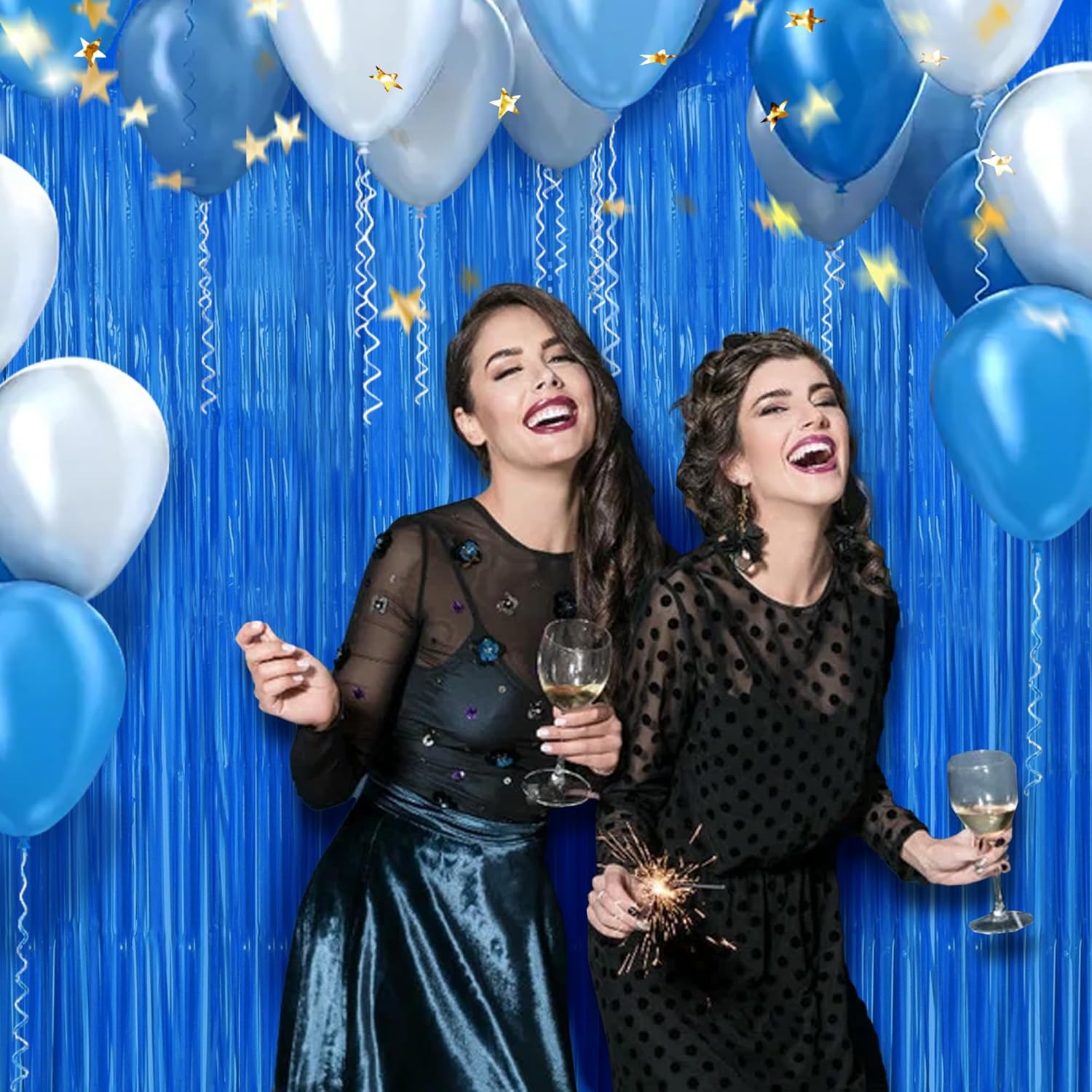 BEISHIDA 2Pcs Dark Blue Door Streamer Fluorescent Blue Backdrop Blue Foil Fringe Curtains Tinsel for Birthday Baby Shower Backdrop Wedding Party Decoration (3.28 ft x 6.56 ft)