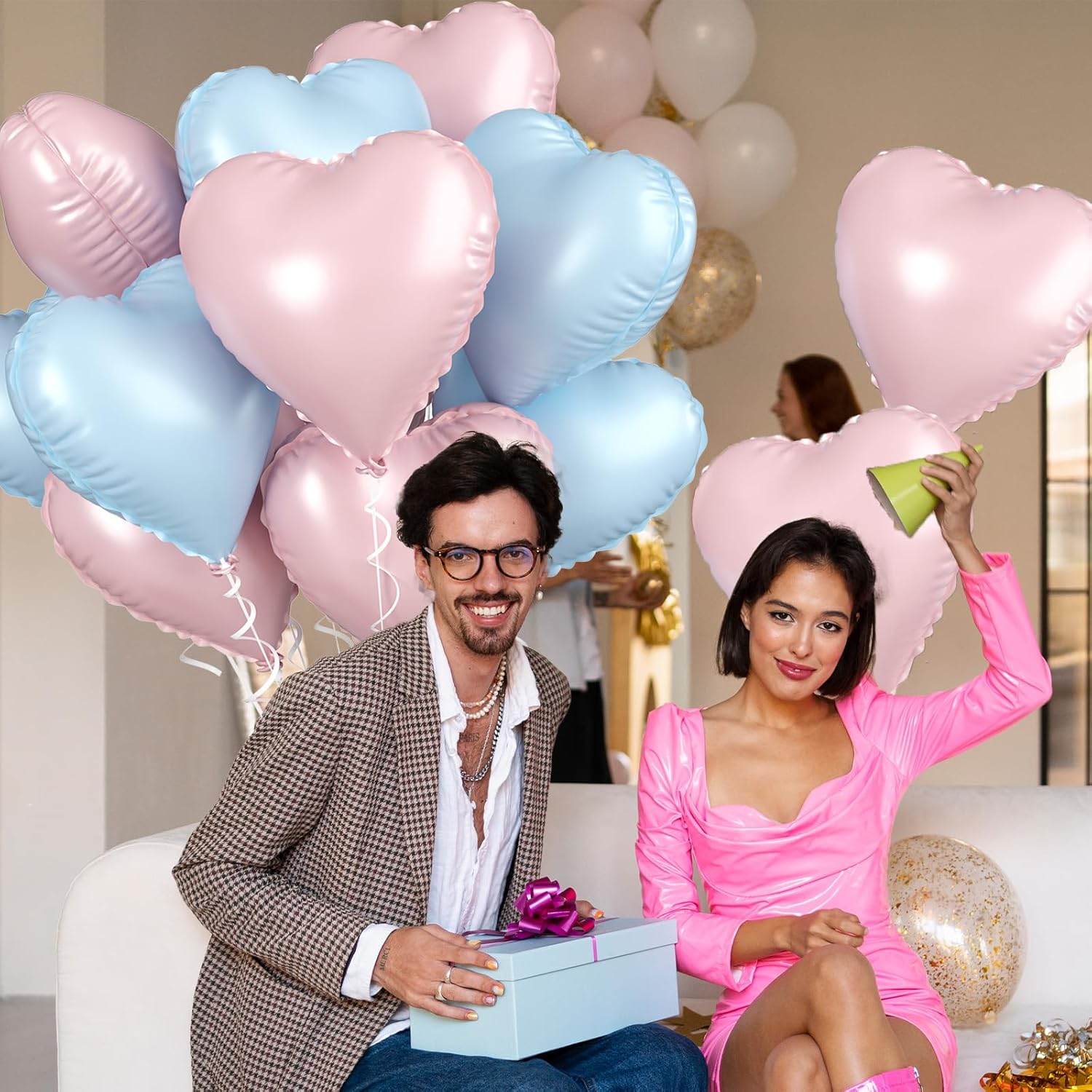 - Versatile Decoration: Our blue and pink heart valentine balloons are perfect for a wide range of celebrations, including boy's and girl's birthday parties, baby showers, Valentine's Day decorations, wedding parties, bridal showers, princess parties, anniversaries, and more. They are ideal for balloon bouquets, home and table decor, wedding aisle decoration, photo backgrounds, party supplies, and other events.