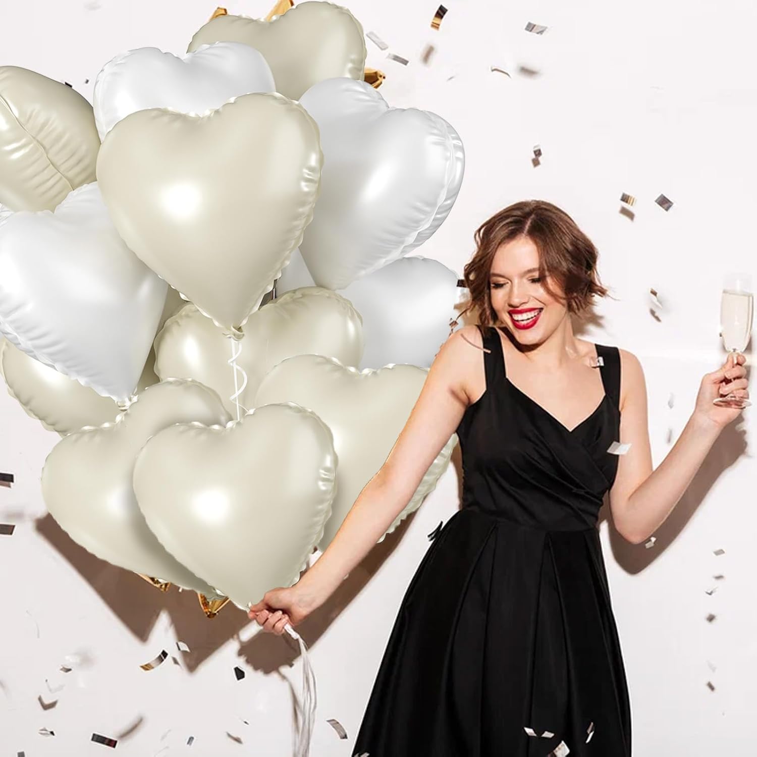 - 10 PCS Cream Heart Balloons: Our package contains 5 x 18 inches cream heart shaped balloons, 5 x 18 inches white heart shaped balloons, 1 x 10m ribbon. The cream foil heart balloons are specially designed to add a touch of fun and surprise to any party or holiday celebration. With a size of 18 inches, they are the perfect addition to your decorating needs, leaving your guests with an unforgettable smile!