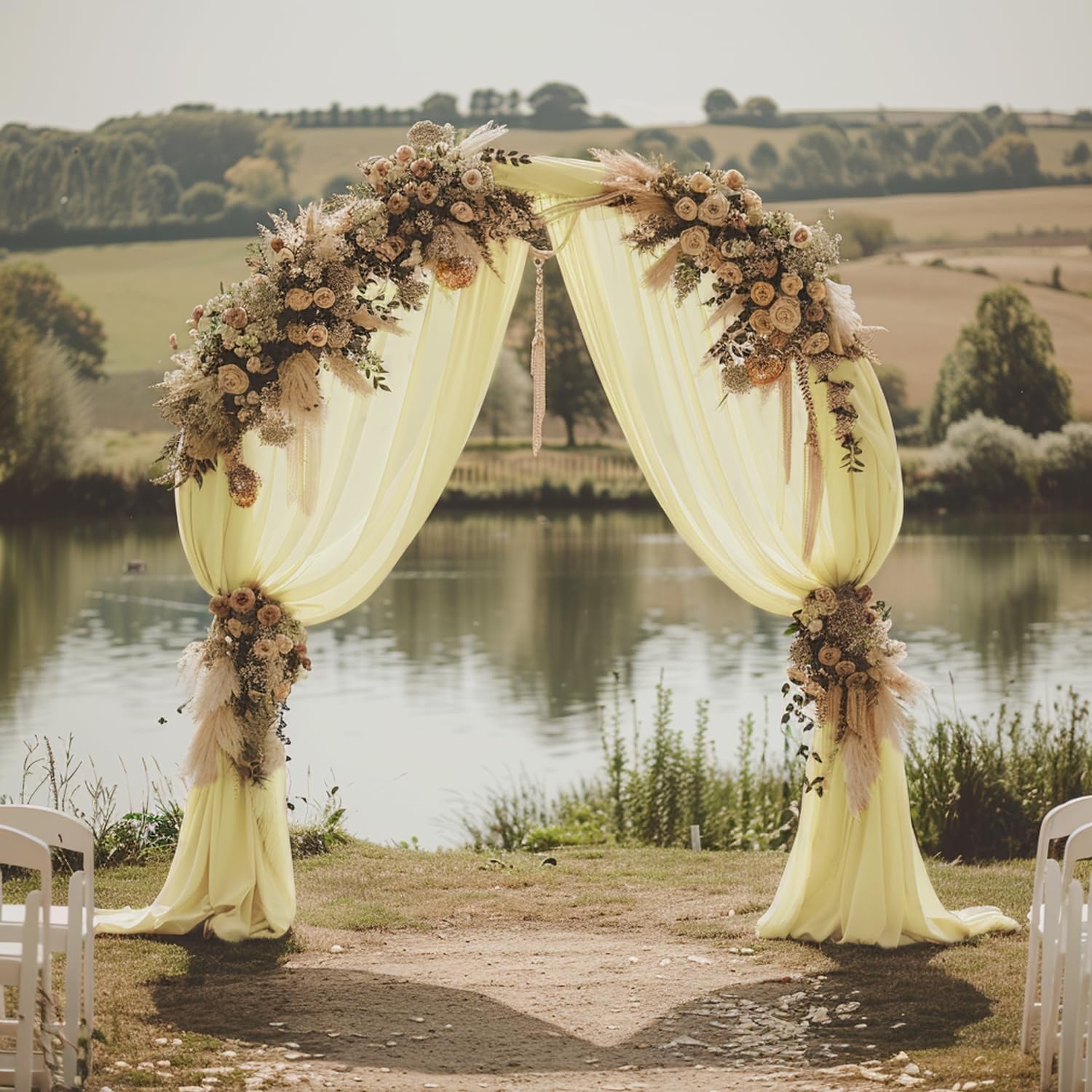 - 【Soft Wedding Drapes】Sheer drapes for wedding arch decor are made of polyester fabric, touch silky soft. These arch draping fabric is lightweight, easy to hang vertically with natural sagging, wrinkle-free, durable and reusable.