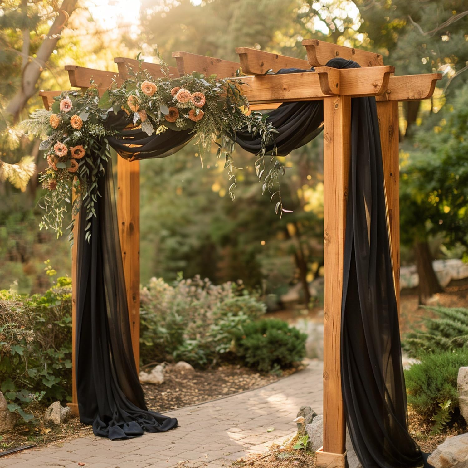Wokceer Black Wedding Arch Draping Fabric Backdrop 4 Panels 28.7" X 20FT Sheer Drapes Fabric for Wedding Arbor Ceremony Party