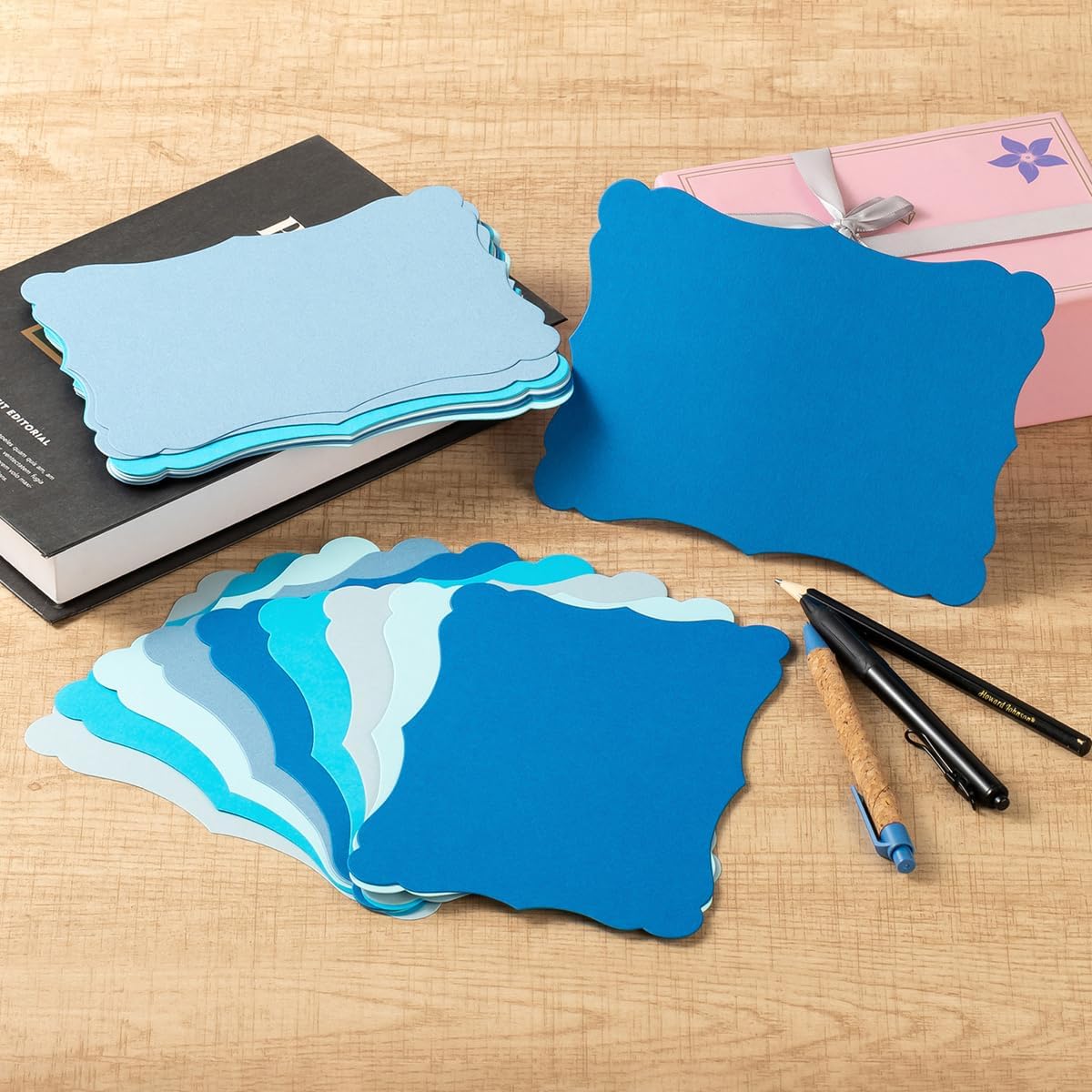 50 Pack Blank Kraft Cards Cardstock Thick Paper Brown Greeting Cards for DIY Gift Card Menus, Baby Shower and Wedding Invitations (Blue, 5 Colors, 4x6IN)