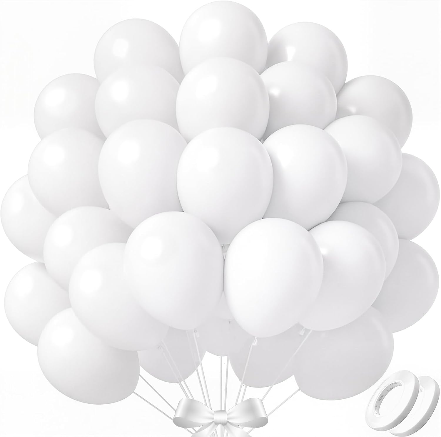 - FUNCTIONAL PARTY BALLOONS - Includes 110pcs 12 inch white ballons, 2 rolls of ribbons and a manual.