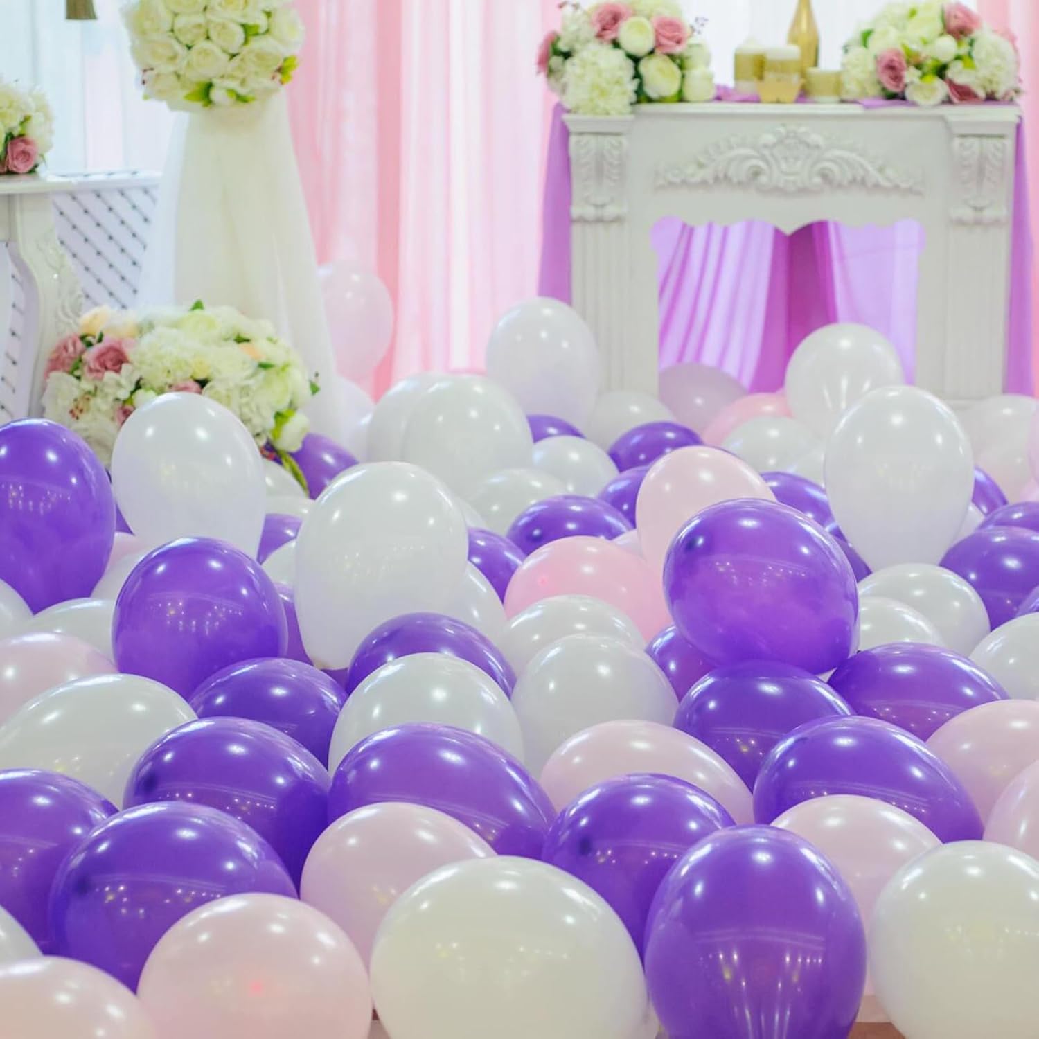 - FUNCTIONAL PARTY BALLOONS - Includes 110pcs 12 inch purple ballons, 2 rolls of ribbons and a manual.