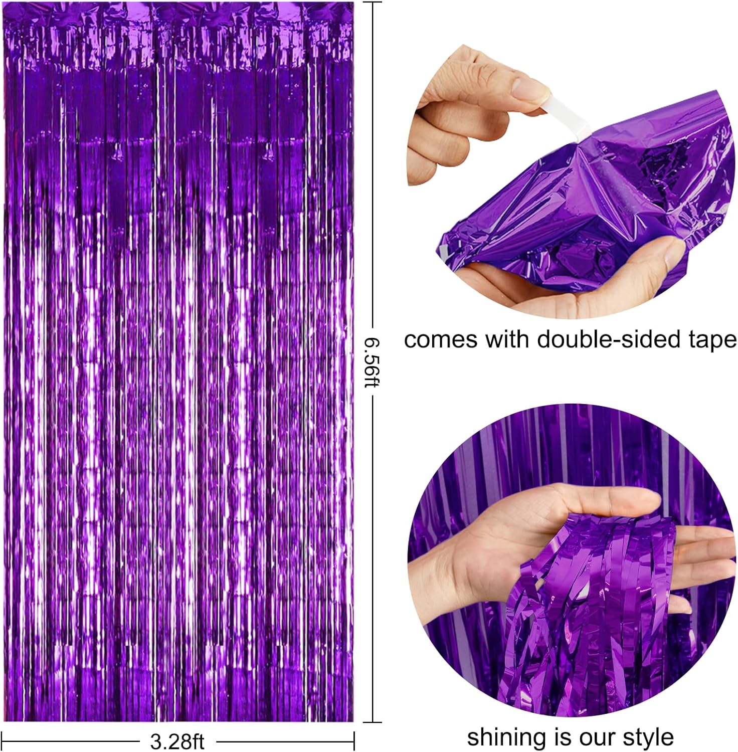 TONIFUL 2Pcs Black Purple Door Streamers,Photo Booth Backdrop Metallic Streamers Foil Fringe Curtains for Birthday Christmas New Year Bachelorette Halloween Party Streamers Decor