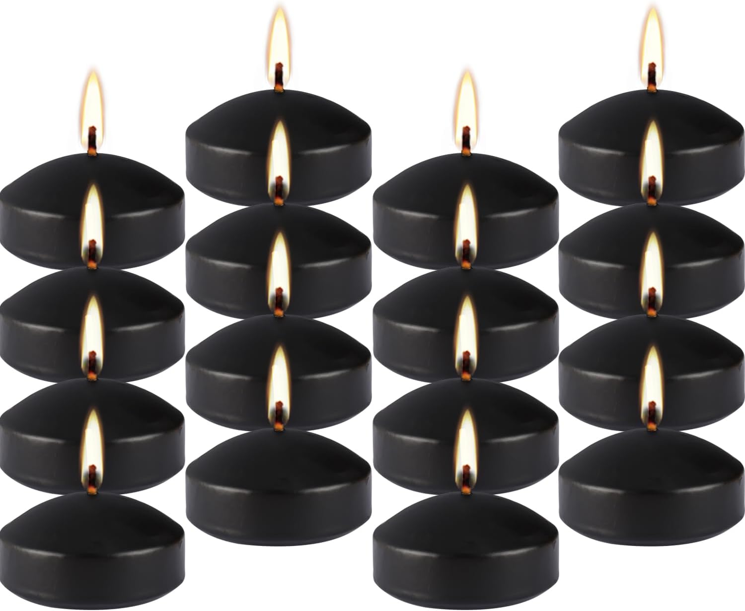 Black 3-Inch Floating Candles - Set of 12 Long-Lasting, Waterproof, Wind-Resistant, Perfect for Halloween Decorations, Outdoor Pools & Parties, Holiday Decorations