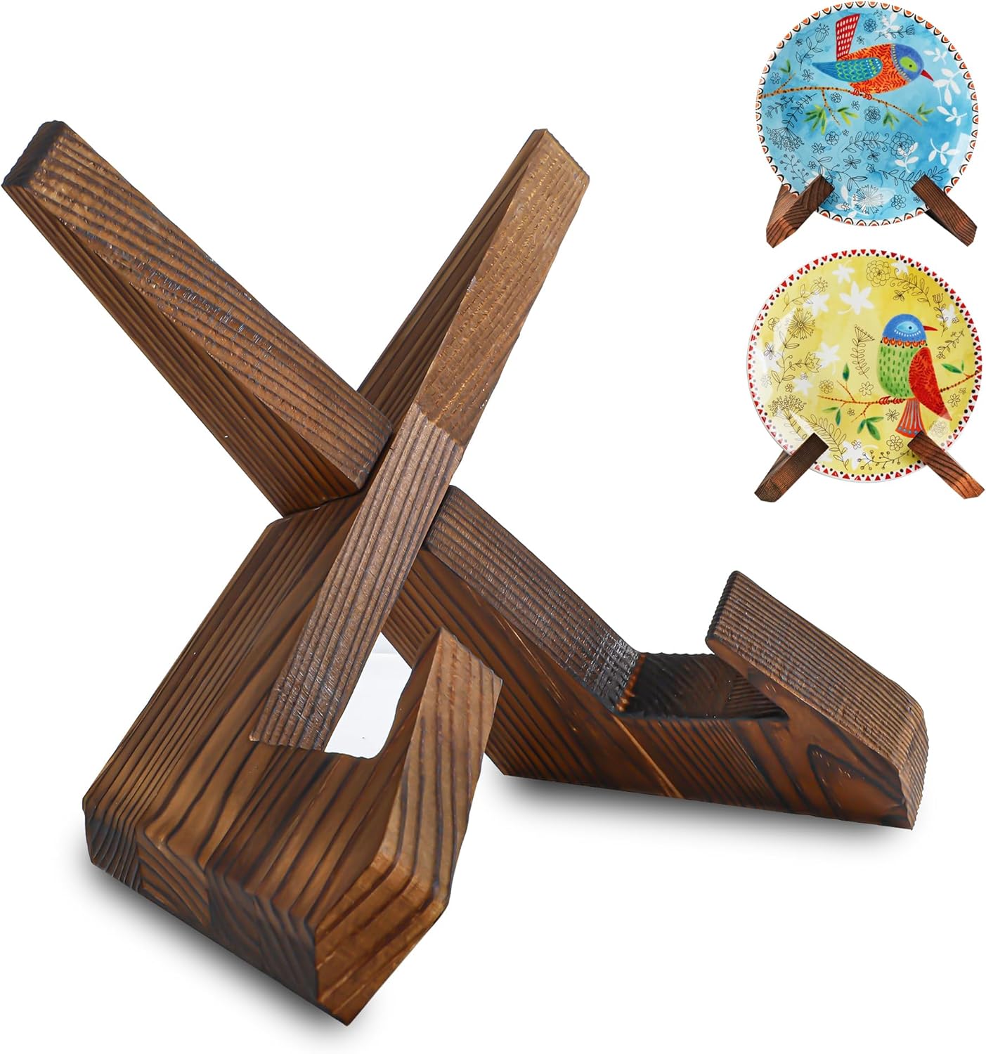 - Rustic Elegance – Solid pine wood stand with natural grain adds depth to displays, securely holding plates, photos, and art pieces.