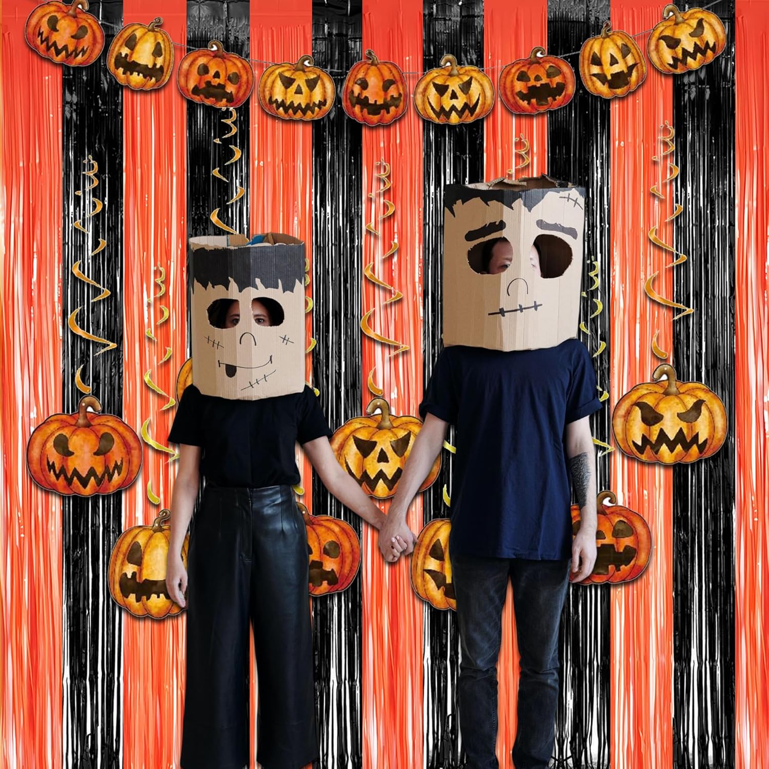 - These black and orange streamers create a stunning visual with a shiny, tinsel party backdrop for setting the scene at your next party, they bring a festive and bold flair to your celebrations.