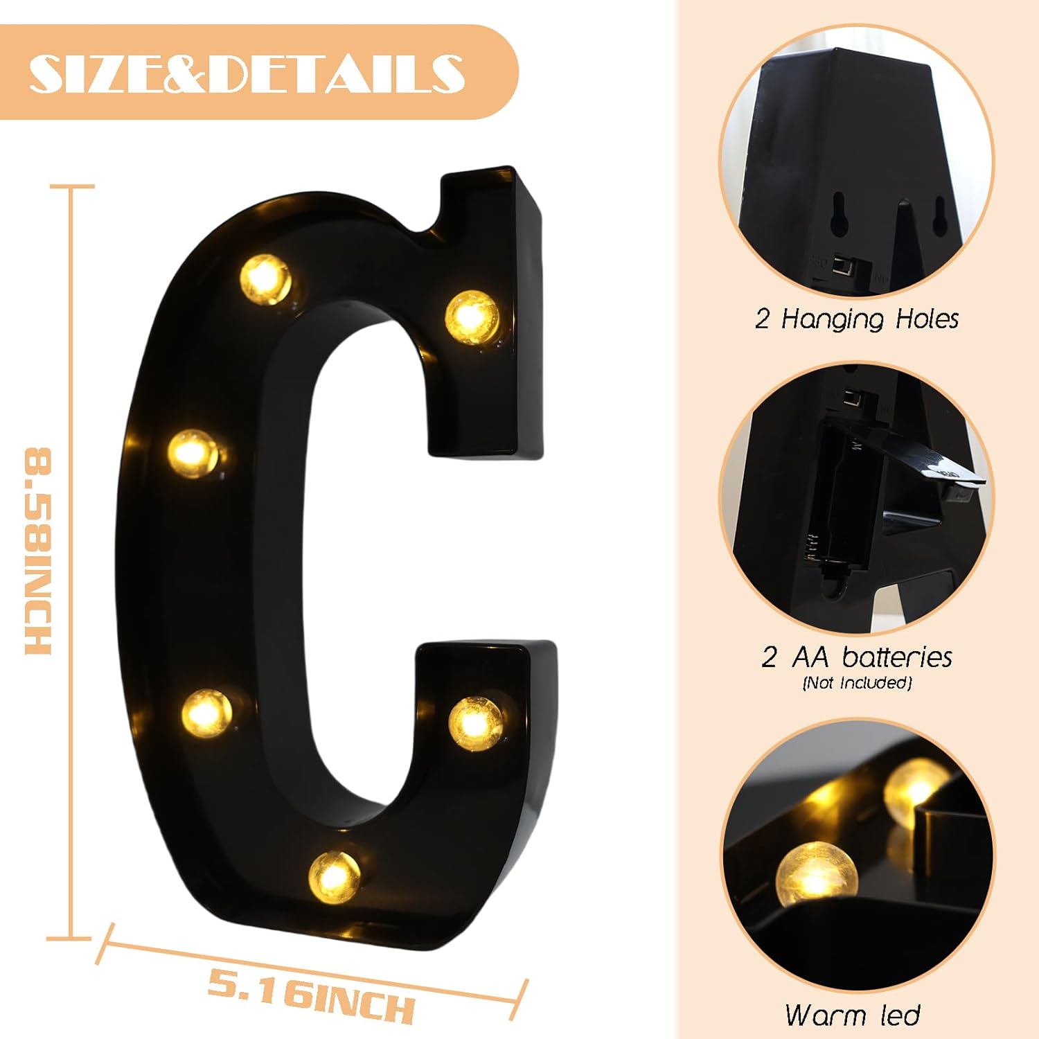 Led Marquee Letters, 8.58 Inch Black Light Up Letters, Small Led Letter Lights, Battery Powered Lighted Letterfor Table, Party, Birthday, Christmas Decor (Black, Letter C)