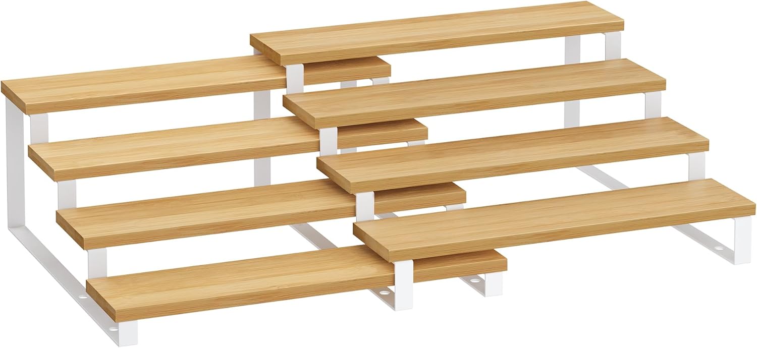 - 【FIND AT A GLANCE】With its specially designed tiered structure and each tier being 3" deep, this display riser ensures all your spice jars and items are clearly visible and easily accessible, preventing messes and keeping your kitchen organized