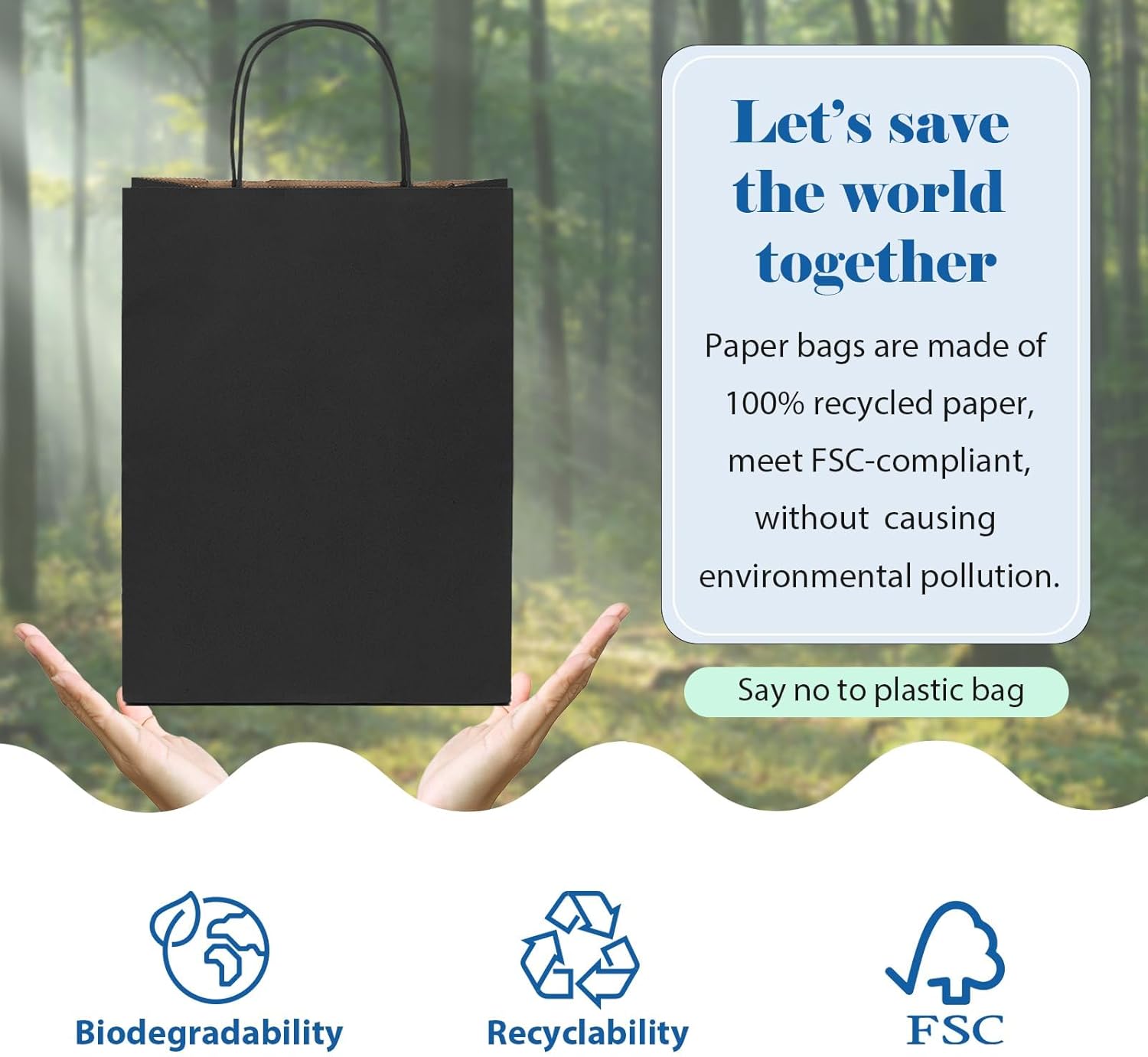 - Kraft Bags: The paper gift bags are made of recycled paper,FSC-compliant. They are biodegradable, recyclable, non-toxic, odorless, and pollution-free, can be reused for many times.