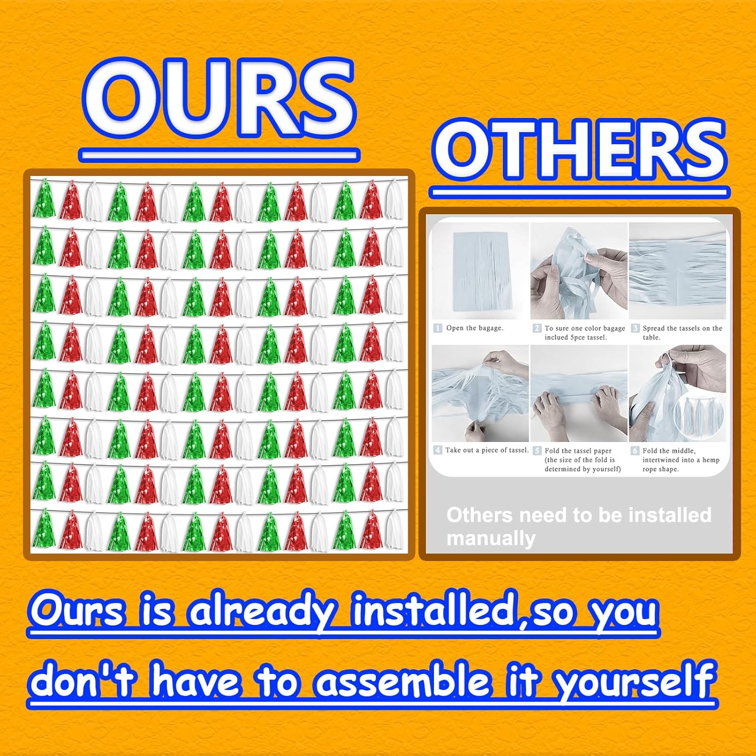 - 【Perfect Party Decoration】The Red Green White tinsel garlands are designed in a metallic Fringe, bright, and beautiful, at the same time, they shine in the sun, and these gorgeous tassel garlands create a wonderful backdrop or centerpiece for your party space. and bring you, your family, and your friend's good Visual effects. your party many emotional and touching moments where a lot of pictures will be taken and everybody will have a wonderful time together.
