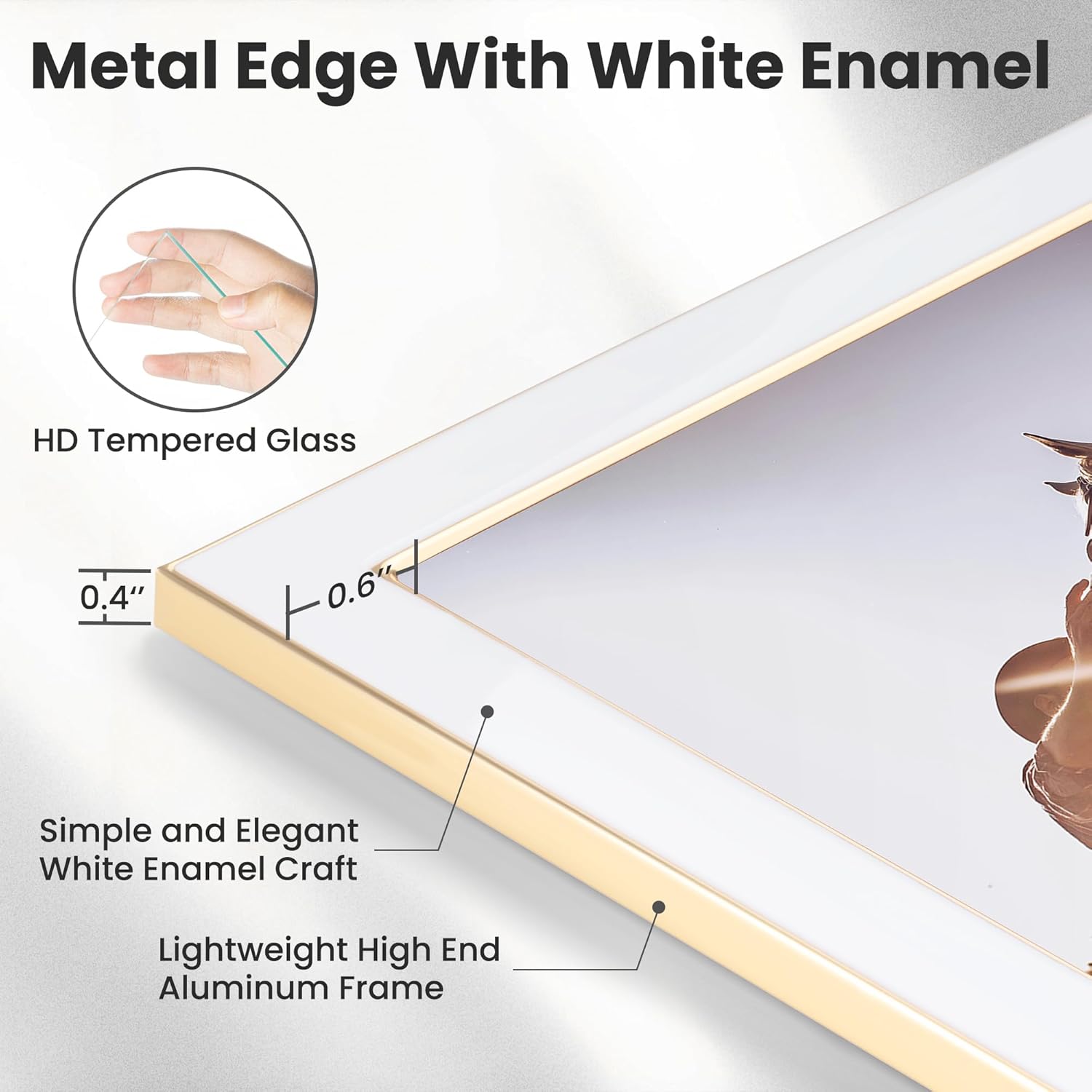 - UNDERSTATED ELEGANCE: Our enamel picture frames are meticulously crafted and feature high-definition toughened glass for optimal visibility. The frames are made with high-quality materials and finished with flawless plating. The enamel comes in various hues and dries smoothly for a sleek, shiny look. With a range of color and size options, our frames complement any room's decor.