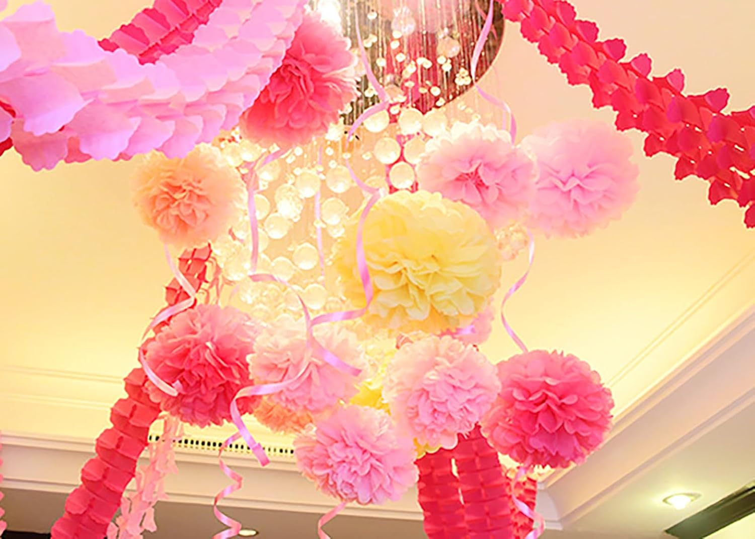 - PAPER FLOWER POM POMS Used in lieu of balloons, for they are more lightweight. They can be scattered as dessert table decor, or placed in vases as unique centerpieces. You can create a wonderful backdrop for your family or friends with it