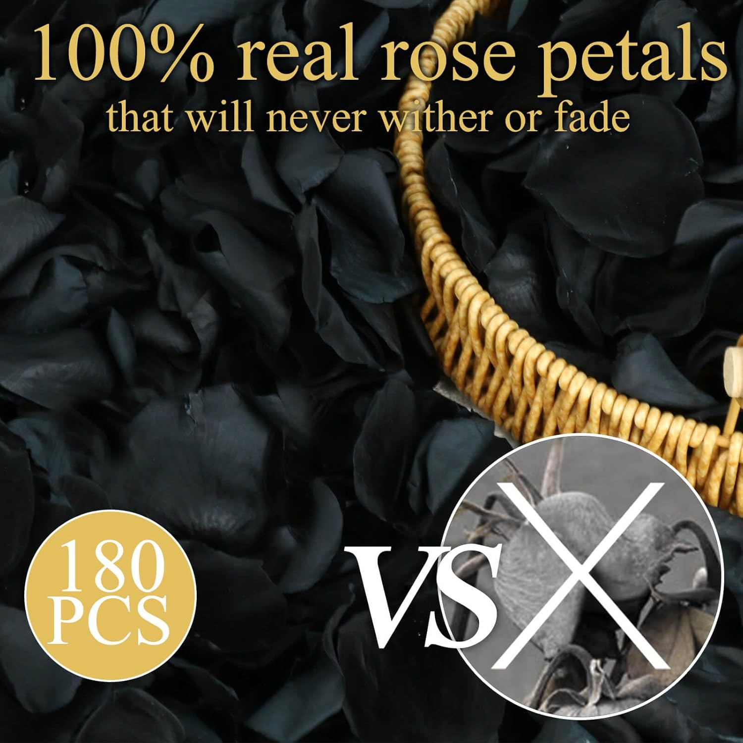- Black Party Decor: The exquisite black rose petals are perfect for sprinkling on wedding tables, church aisles, baby showers, birthday party, romantic nights, themed parties, or simply placing them in a basket as decoration. They are perfect for weddings, surprise proposals, Valentine's Day, celebrations, honeymoons, and anniversaries