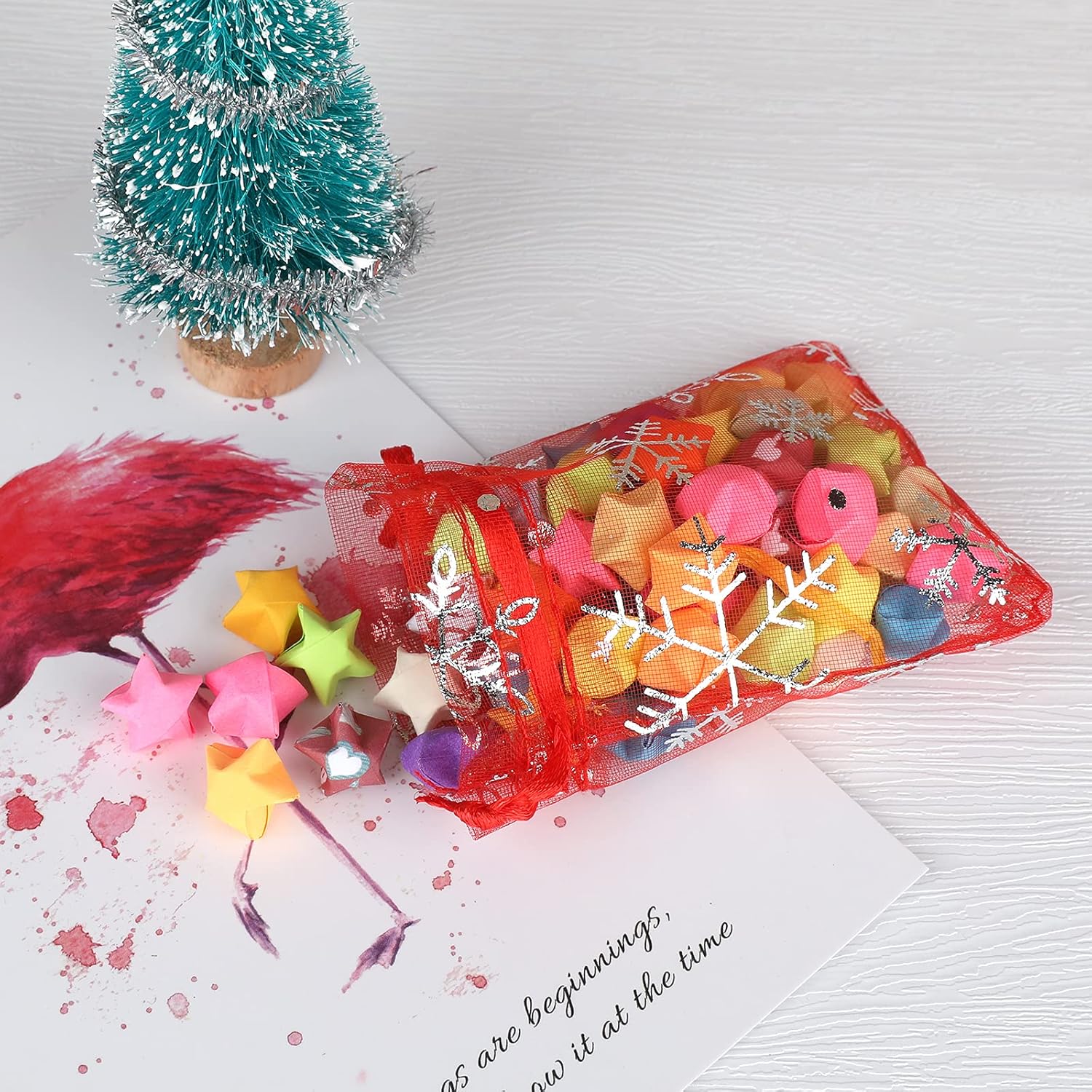 jijAcraft 3x4Inch Christmas Organza Bags - 50Pcs Red Snowflake Gift Bags, Xmas Party Favor Drawstring Mesh Gift Pouches for Winter Gift, Candy, Jewelry Bags
