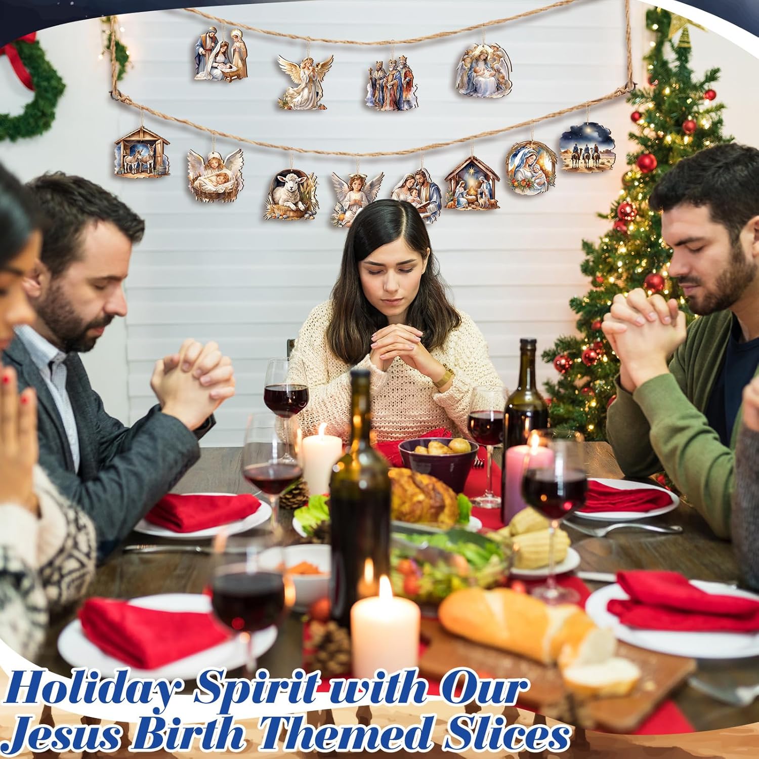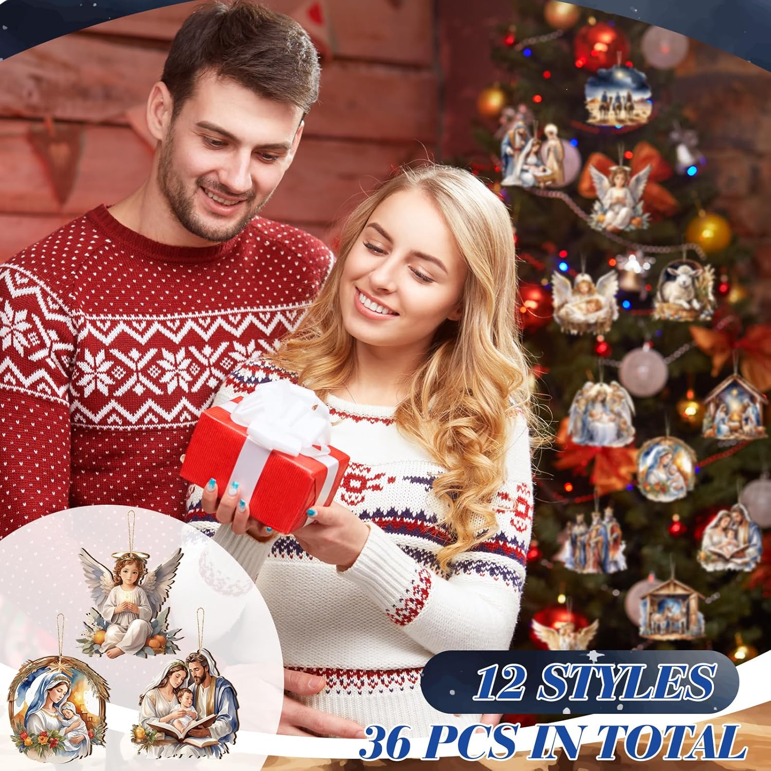Suzile 36 Pcs Christmas Wooden Ornaments Nativity Ornaments Religious Christmas Decorations for Tree Wreaths Xmas Birth of Jesus Hanging Wood Cutouts Decor for Farmhouse Home Christian Party Favors
