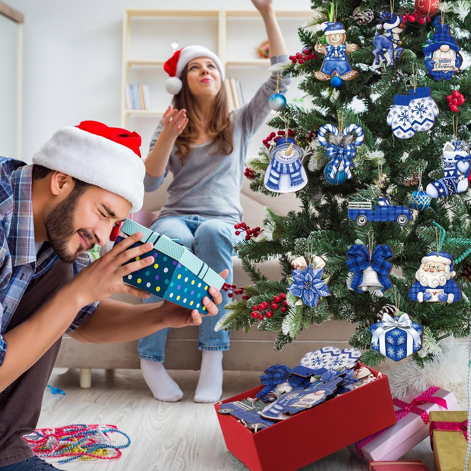 Suzile 36 Pcs Christmas Wooden Ornaments Blue Christmas Ornaments for Tree Vintage Winter Tree Decorations Xmas Hanging Wood Cutouts Decor for Farmhouse Home Winter Holiday Party Wreaths