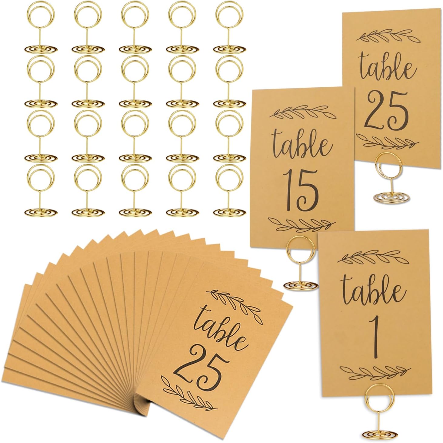 - Elegant Table Number Set: Includes 25 kraft table numbers 1-25, along with 25 gold table number holders, everything you need for a beautifully coordinated seating arrangement without needing additional holders.