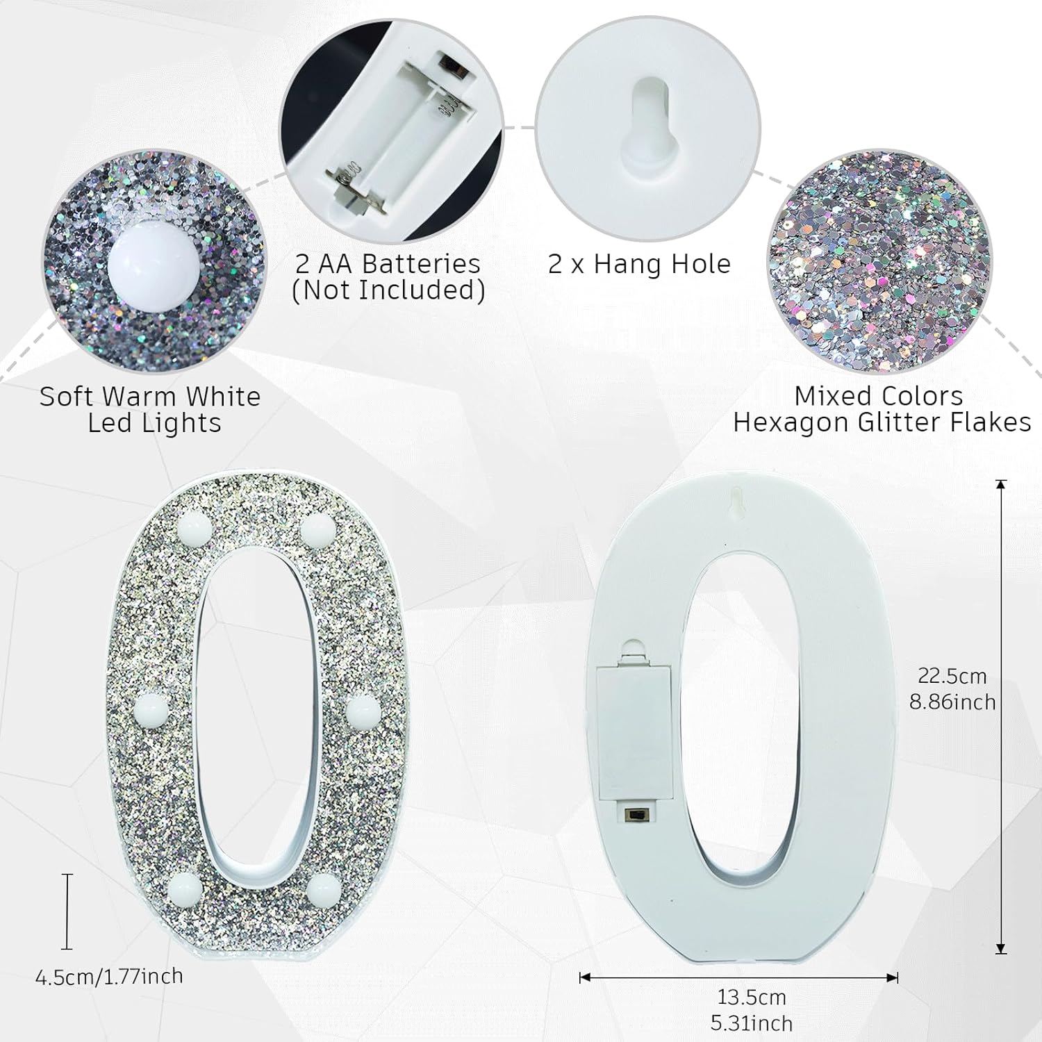 Light Up Marquee Letters for Table Decorations, Glitter Signs for Prom, Events, or Engagement Party Decor, Featuring Alphabet & Number Lighted Letters, Number 0
