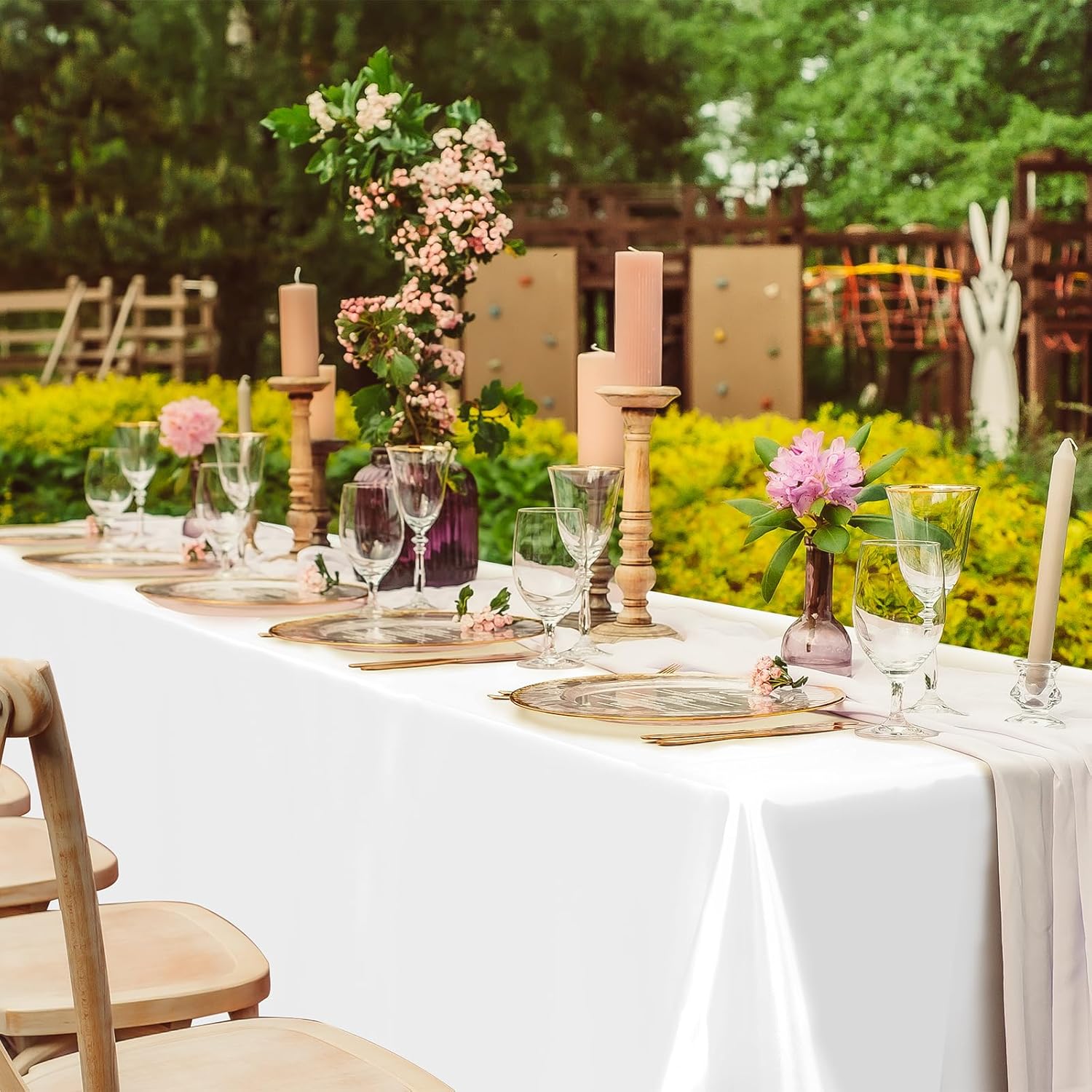 - Large size: the size of our white satin table covers are 102 x 58 inches/259 x 147 cm, which is large enough to decorate a table that can accommodate 10-12 persons; the elegant color will make the tablecloth more delicate, with them, your party will be attractive and eye-catching