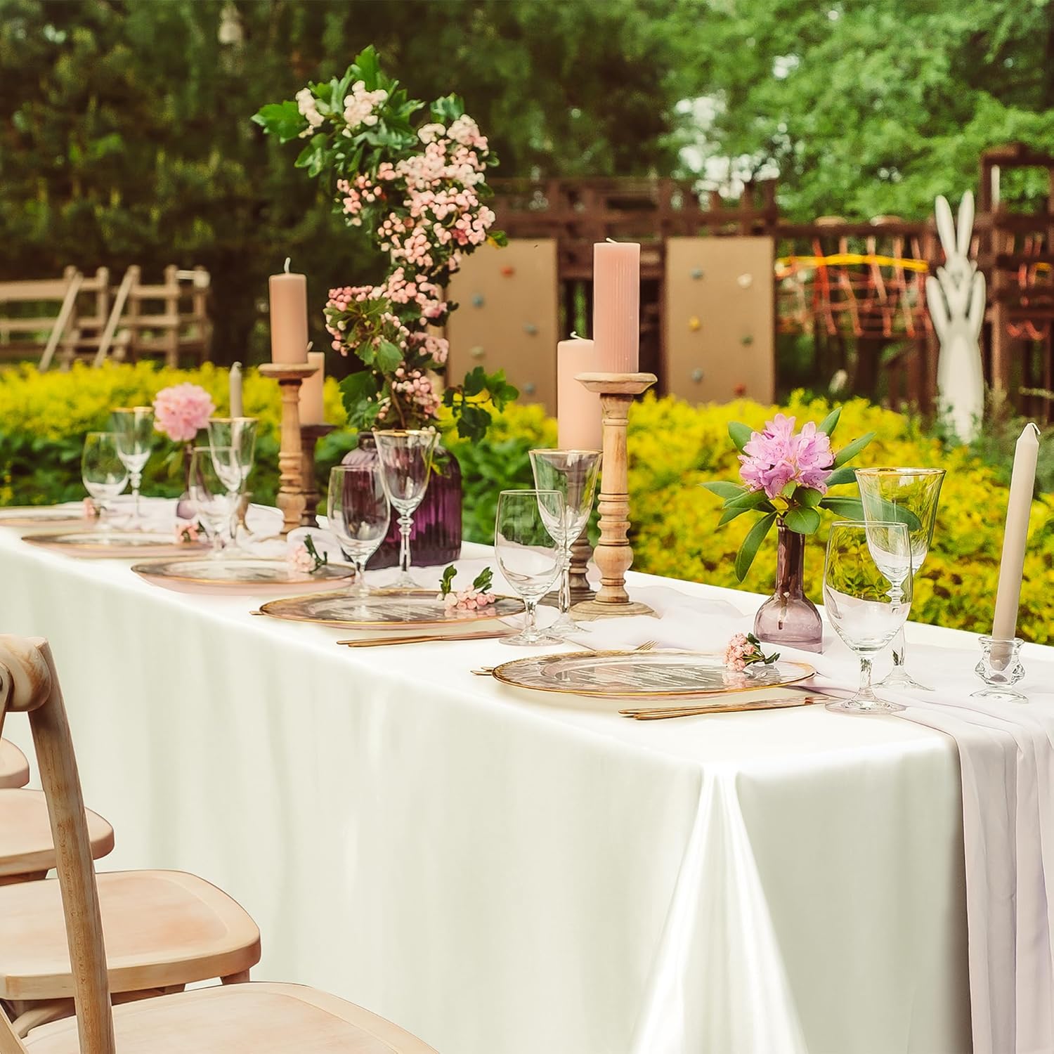 - Large size: the size of our ivory satin table covers are 102 x 58 inches/259 x 147 cm, which is large enough to decorate a table that can accommodate 10-12 persons; the elegant color will make the tablecloth more delicate, with them, your party will be attractive and eye-catching